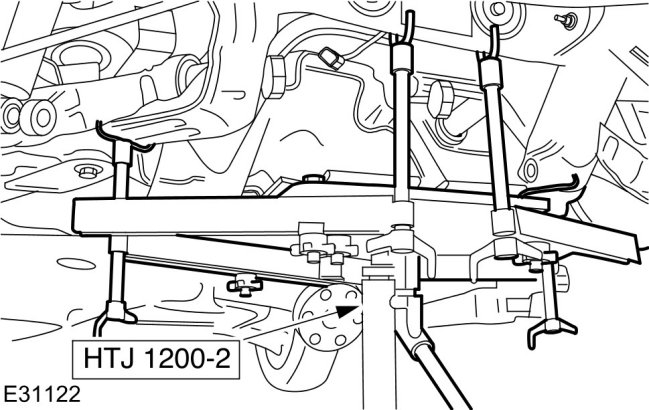 10 Install the special tool to support the rear subframe.