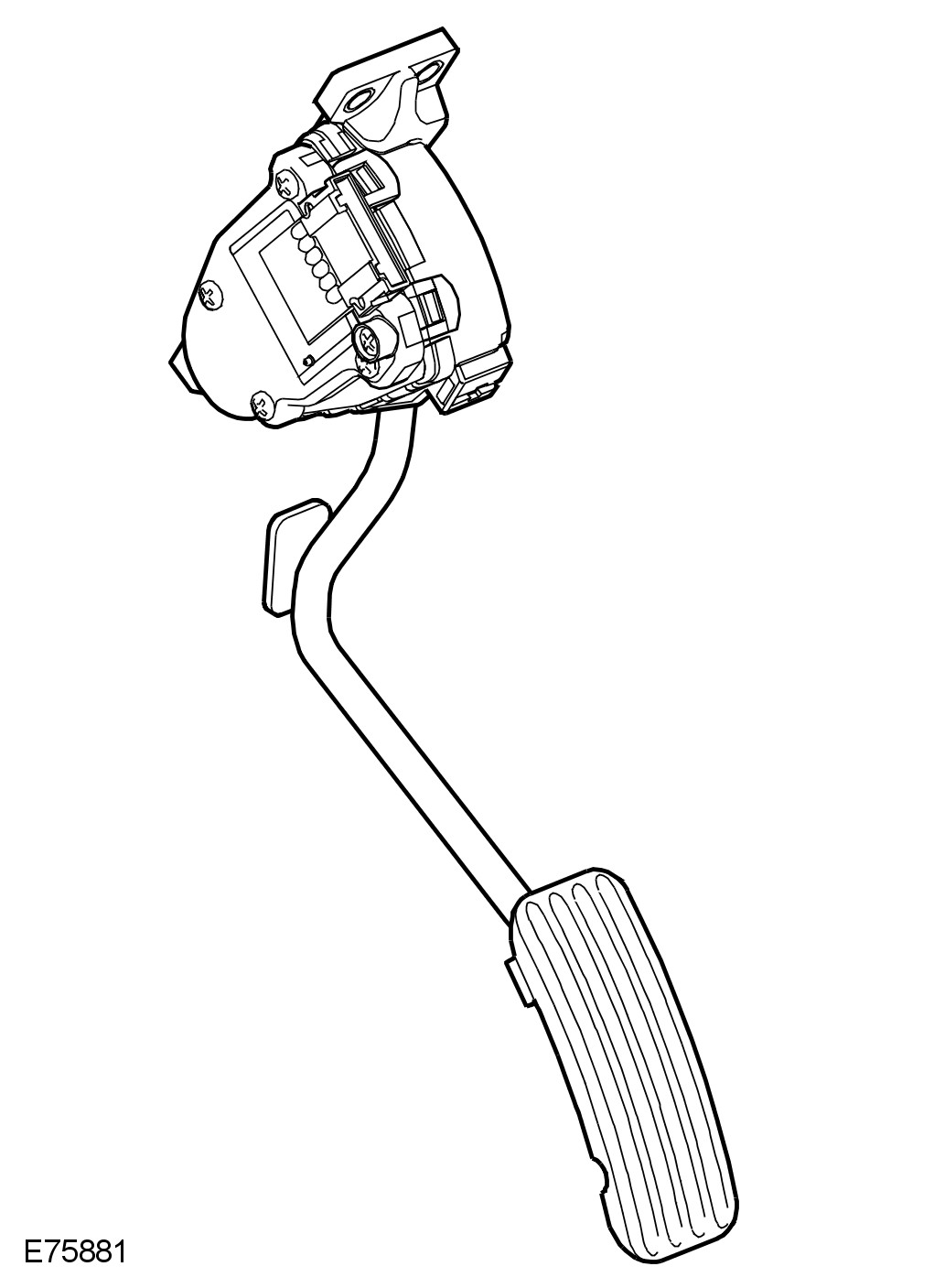 The APP (accelerator pedal position) sensor is located in a plastic housing which is integral with the throttle pedal. The housing is injection molded and provides location for the APP (accelerator pedal position) sensor. The sensor is mounted externally on the housing and is secured with two Torx screws. The external body of the sensor has a six pin connector which accepts a connector on the vehicle wiring harness.