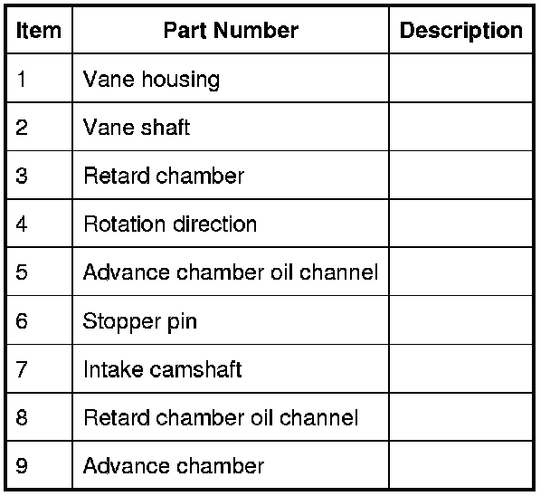 The VVT (variable valve timing) unit is a hydraulic actuator mounted on the end of the intake camshaft. The unit advances or retards the camshaft timing to alter the camshaft to crankshaft phase. The ECM (engine control module) controls the VVT (variable valve timing) timing unit via an oil control solenoid. The oil control solenoid routes oil pressure to the advance or retard chambers either side of the vanes within the VVT (variable valve timing) unit.