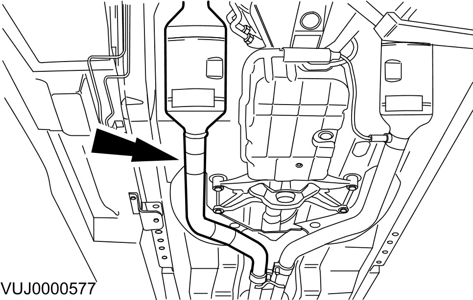 5 Loosen the catalytic converter exhaust clamps and release the front silencer.