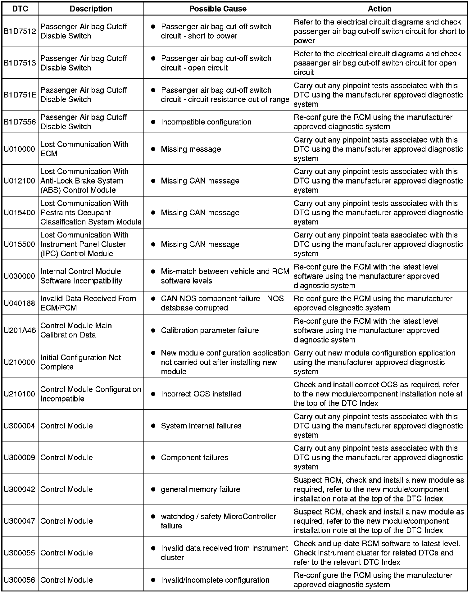 Diagnostic Trouble Code (DTC) Index
