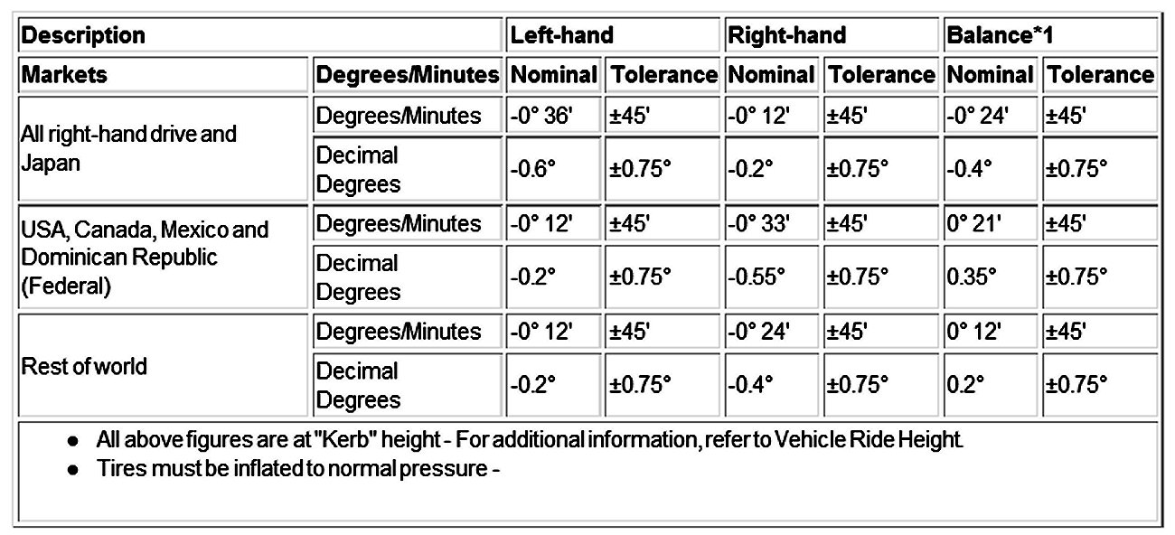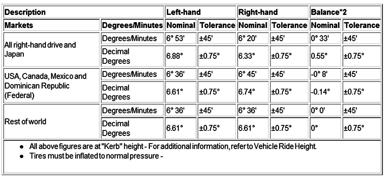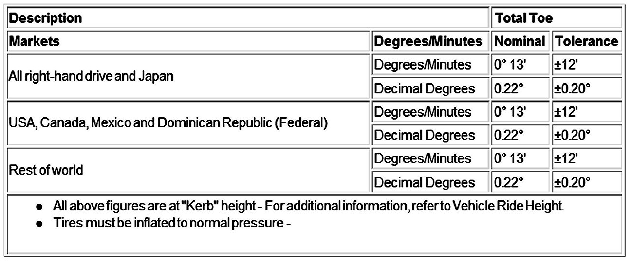 Wheel Alignment Specifications