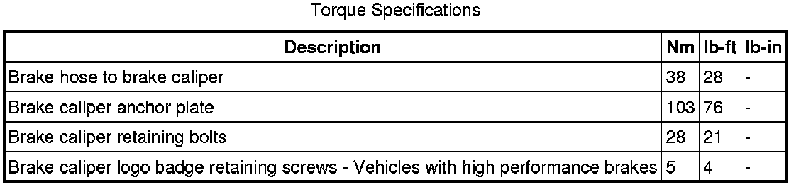 Rear Disc Brake Specifications
