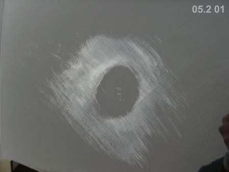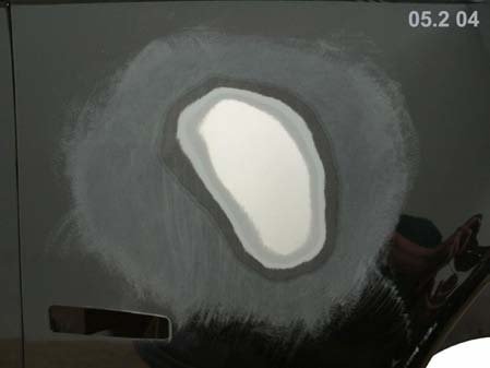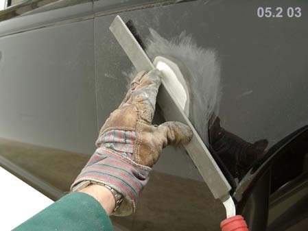 Low spots are worked, use serrated bump spoon, slowly lifting the dent to a uniform level.