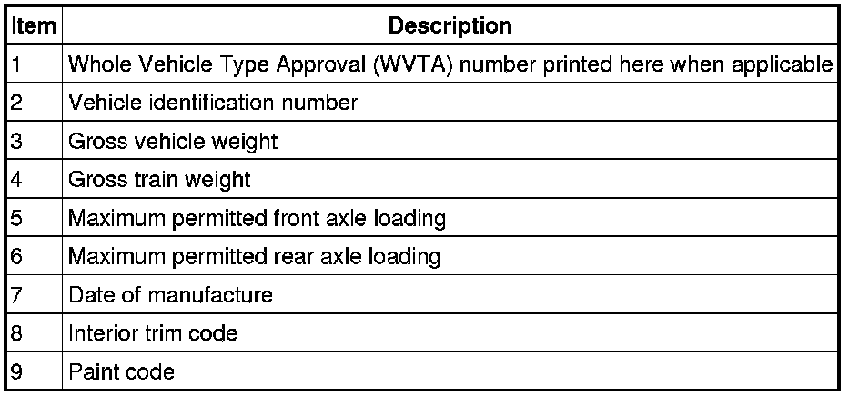 Vehicle Certification Label (Europe and Rest of the world)