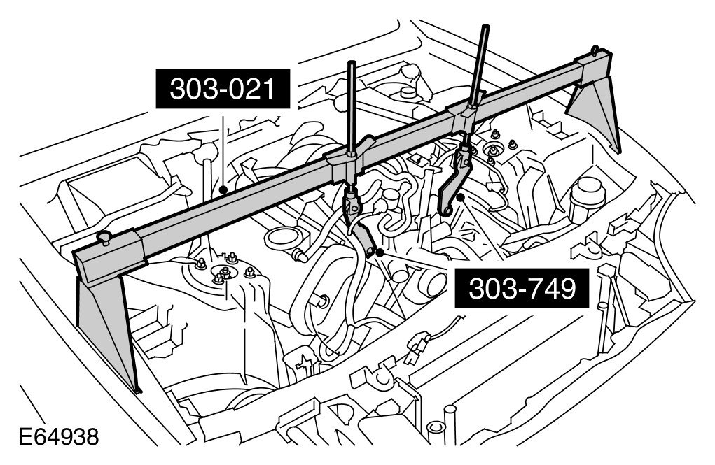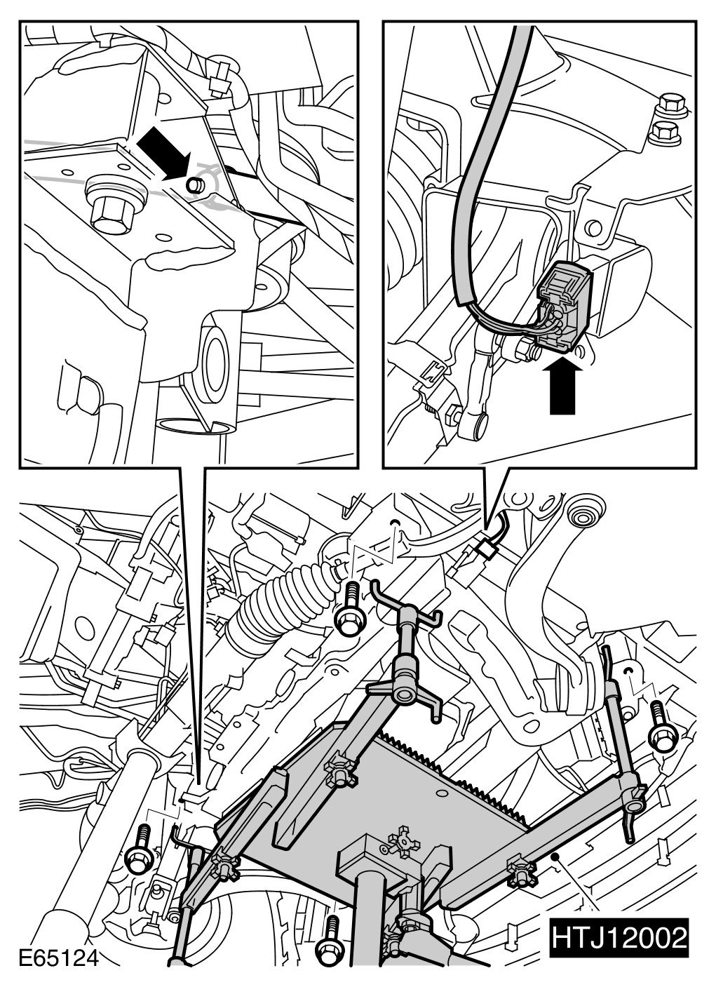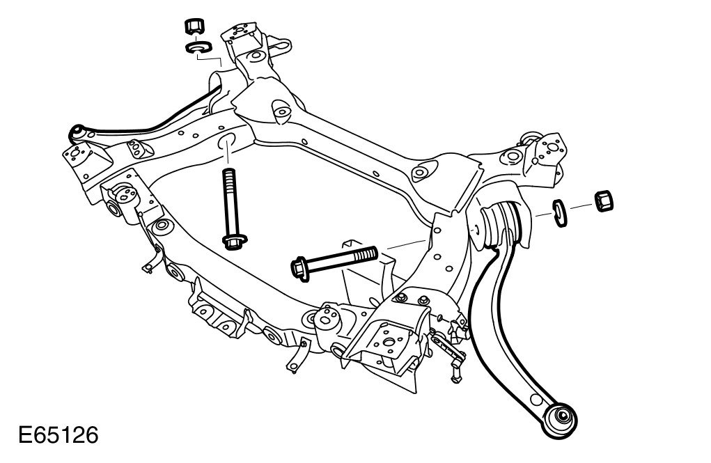 CAUTION: To align the sub-frame, install the special bolts in place of the front fixings. Tighten the rear fixings to set the position, remove the special bolts.