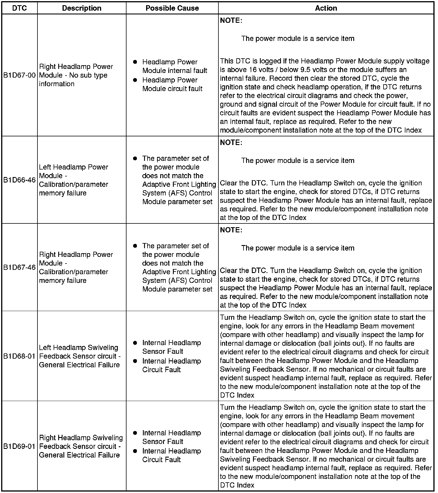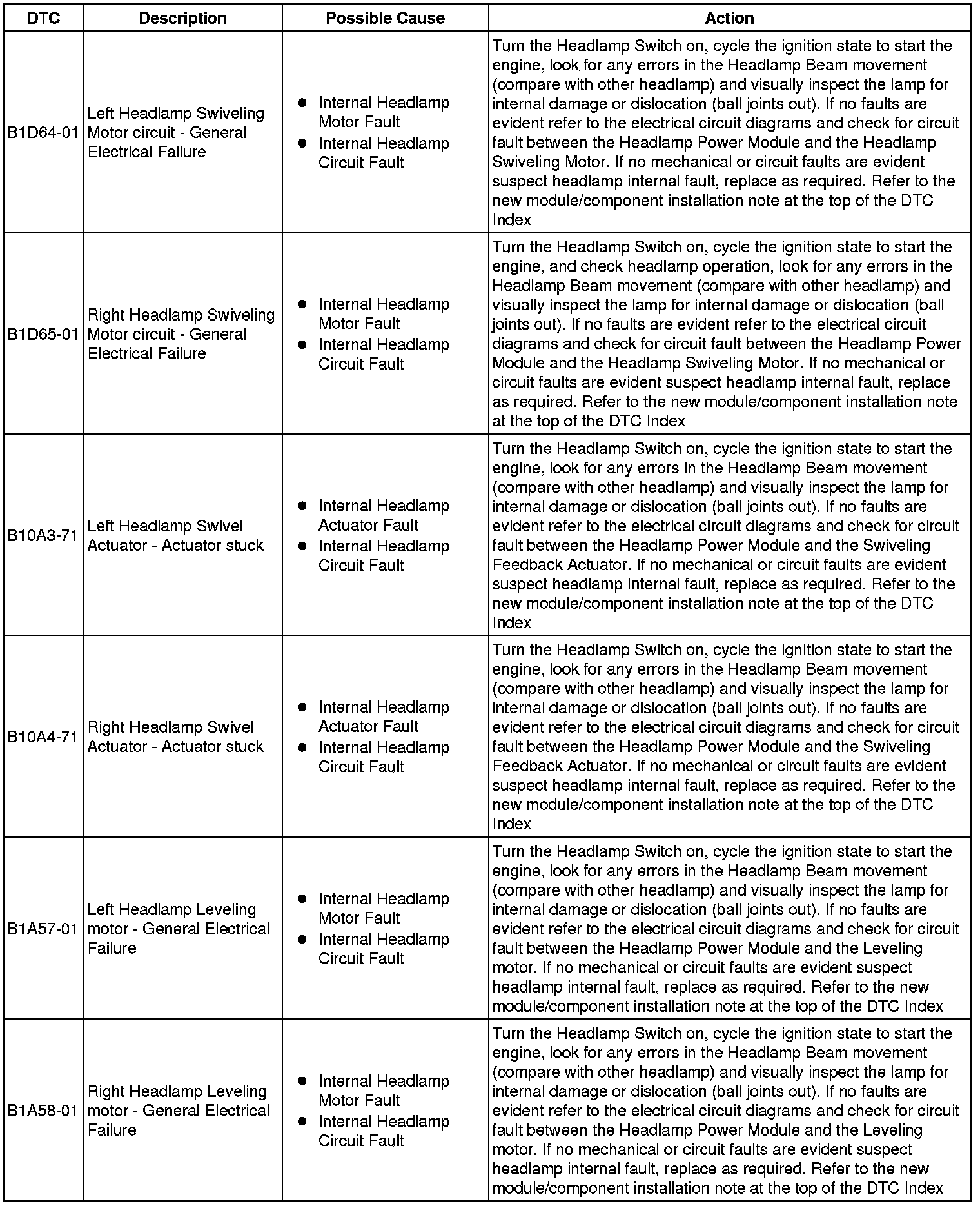 Prior to installation/replacement of the Headlamp assembly carry out all relevant internal visual and mechanical checks for correct cable location and termination including: checks for corroded, bent or backed out pins or terminals, incorrectly inserted connectors and harness damage due to chaffing or incorrect routing.