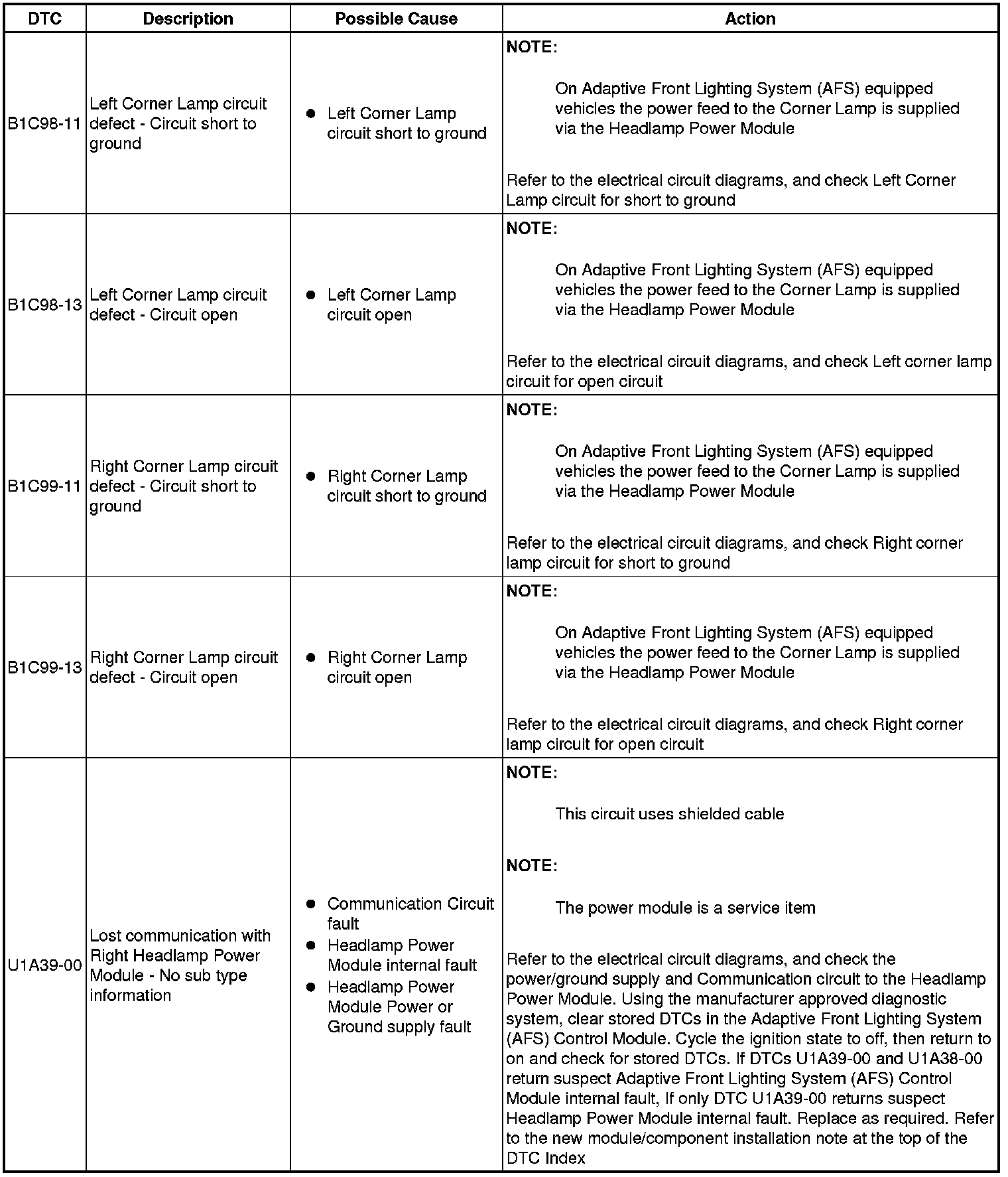 The Headlamp Power Module is referenced as the AFS ECU + Motors in the circuit diagrams.