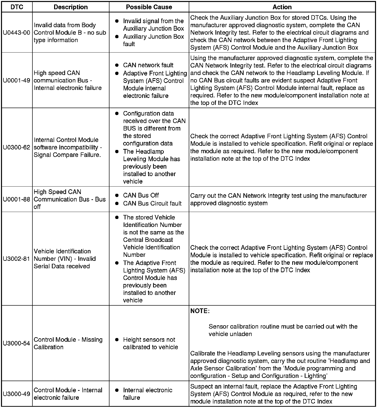 Generic scan tools may not read the codes listed, or may read only five digit codes. Match the five digits from the scan tool to the first five digits of the seven digit code listed to identify the fault (the last two digits give extra information read by the manufacturer-approved diagnostic system).