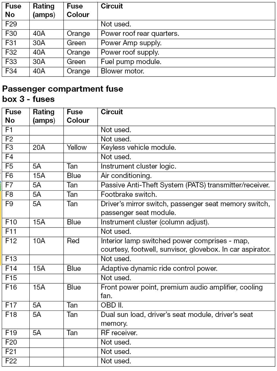 Fuse Box Fuse Assignments