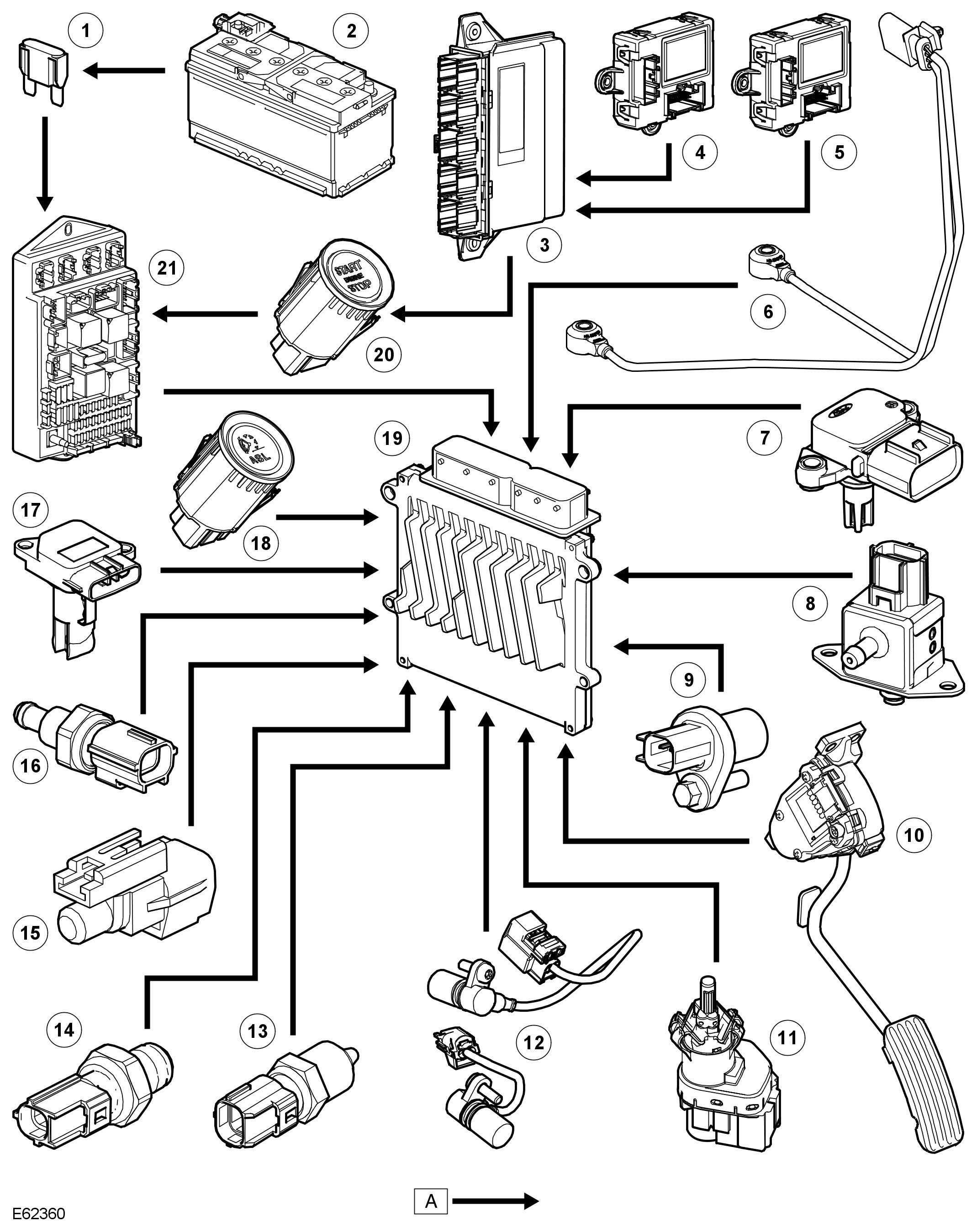 The ECM stores faults as DTC, referred to as 'P' codes. The 'P' codes are defined by OBD legislation and, together with their associated environmental and freeze frame data, can be read using a third party scan tool or T4. T4 can also read real time data from each sensor, the adaptive values currently being employed and the current fueling, ignition and idle settings.