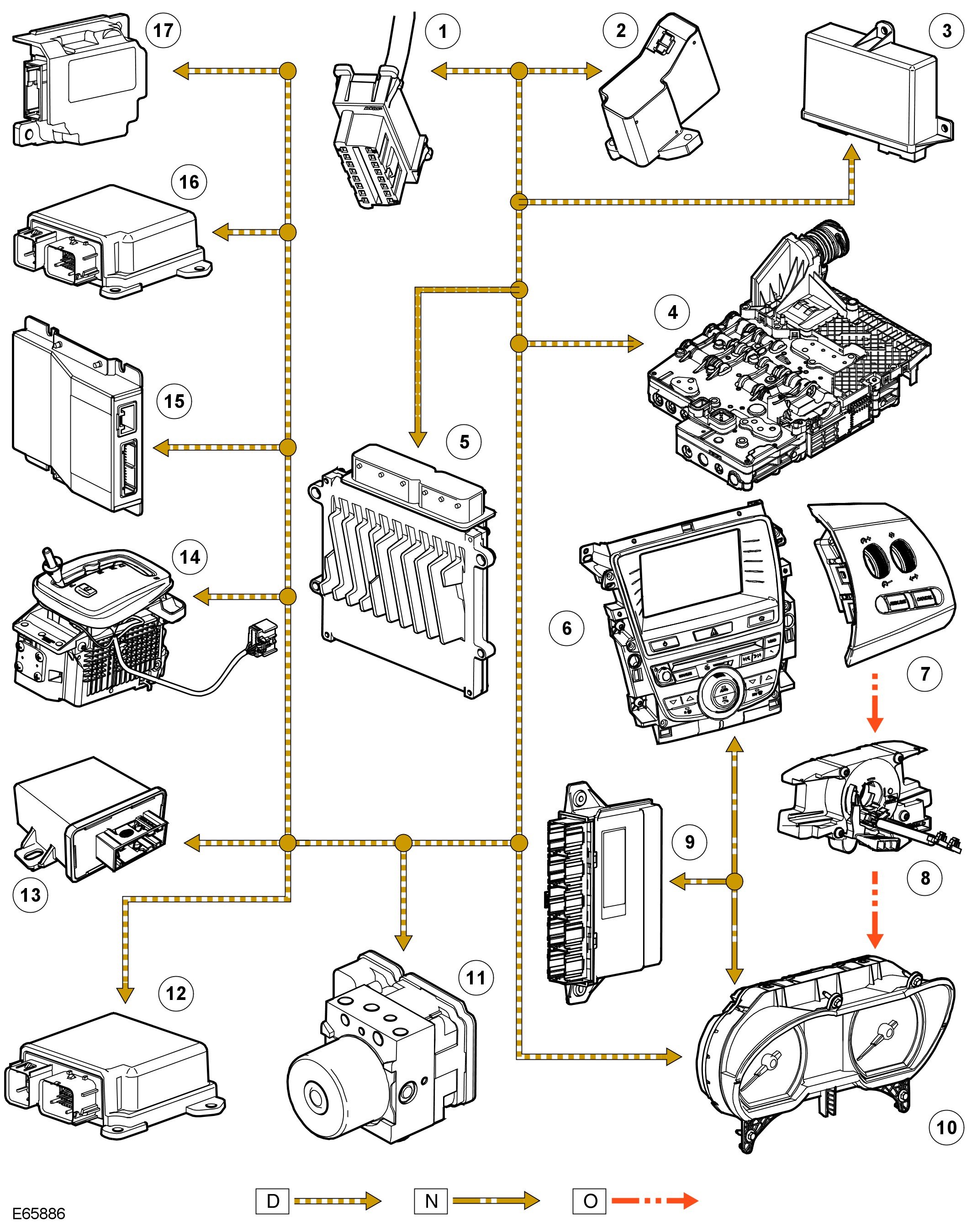 D = High speed CAN bus; N=Medium speed CAN bus; O = LIN (local interconnect network) bus