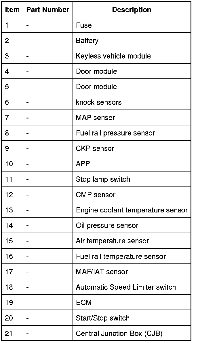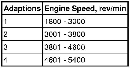 The characteristics of the signal supplied by the CKP are learned by the ECM. This enables the ECM to set an adaption and support the engine misfire detection function. Due to the small variation between different flywheels and different CKP sensors, the adaption must be reset if either component is renewed, or removed and refitted. It is also necessary to reset the flywheel adaption if the ECM is renewed or replaced. The ECM supports four flywheel adaptions for the CKP sensor. Each adaption relates to a specific engine speed range. The engine speed ranges are detailed in the table below: