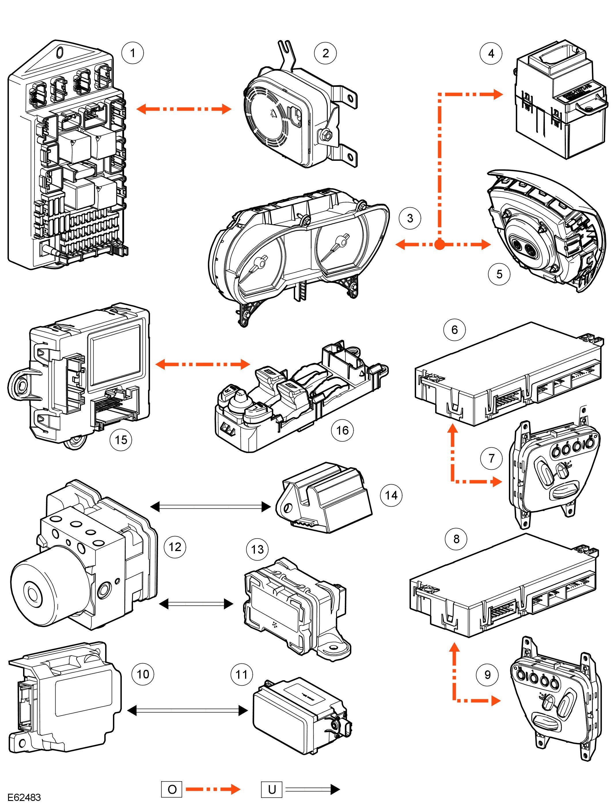 O = LIN bus; U = Private CAN bus