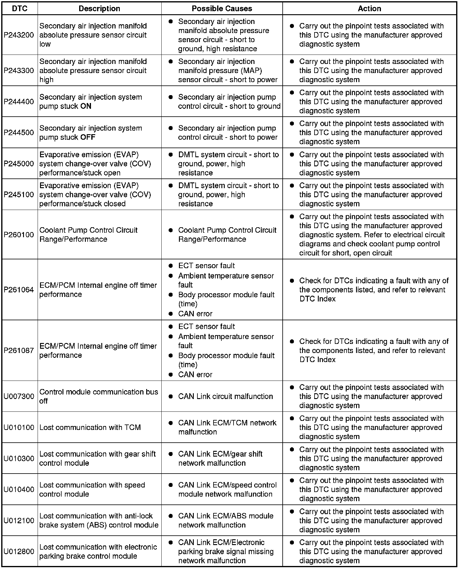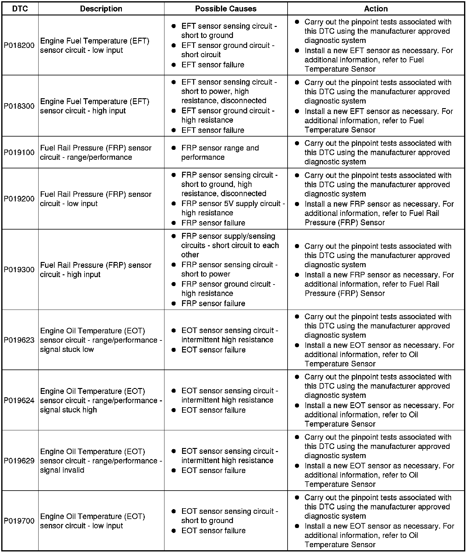Generic scan tools may not read the codes listed, or may read only five digit codes. Match the five digits from the scan tool to the first five digits of the seven digit code listed to identify the fault (the last two digits give additional information read by the manufacturer-approved diagnostic system).