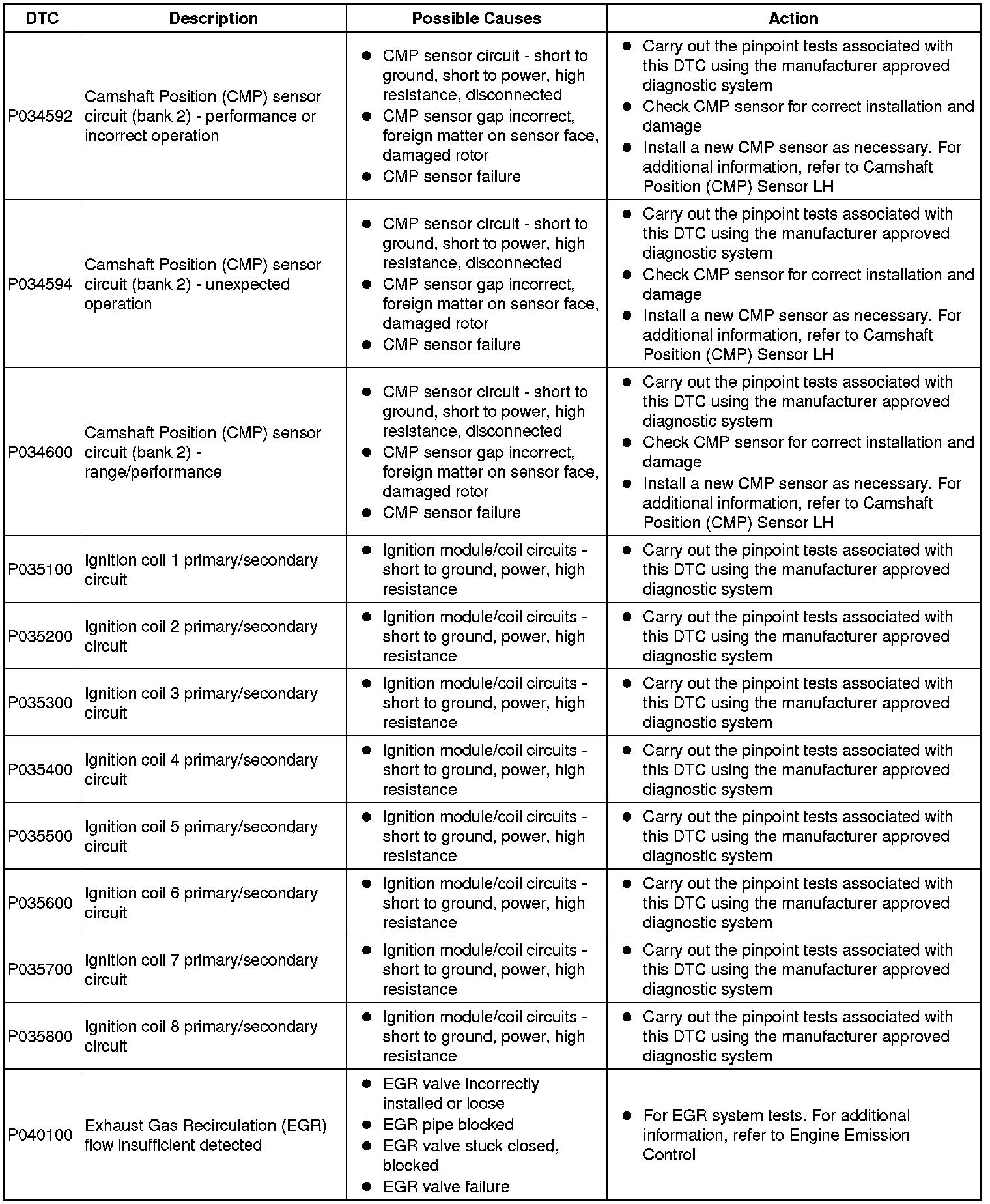 If DTCs are recorded and, after performing the pinpoint tests, a fault is not present, an intermittent concern may be the cause. Always check for loose connections and corroded terminals.