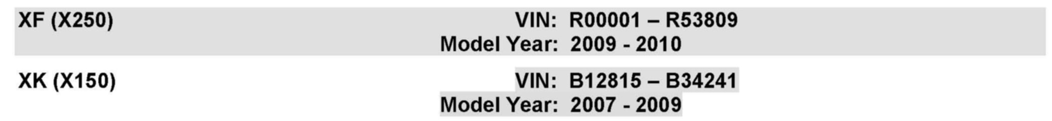 AFFECTED VEHICLE RANGE