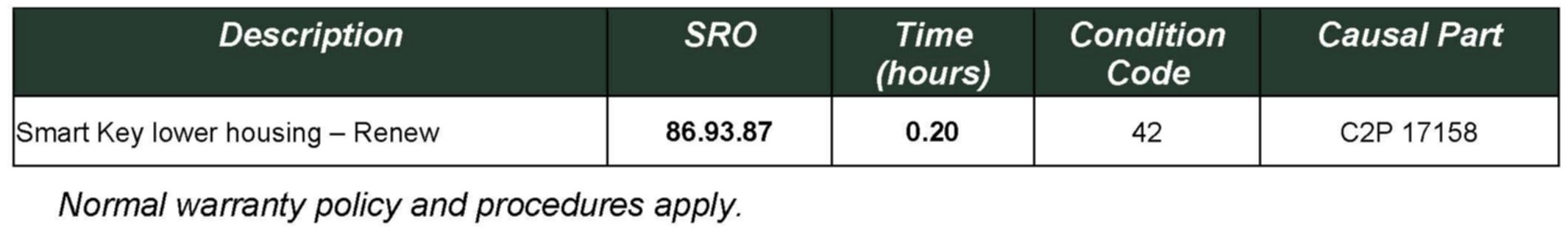 Should a customer express the above concern, refer to the Repair Procedure outlined below to install a new Smart Key lower housing and battery.