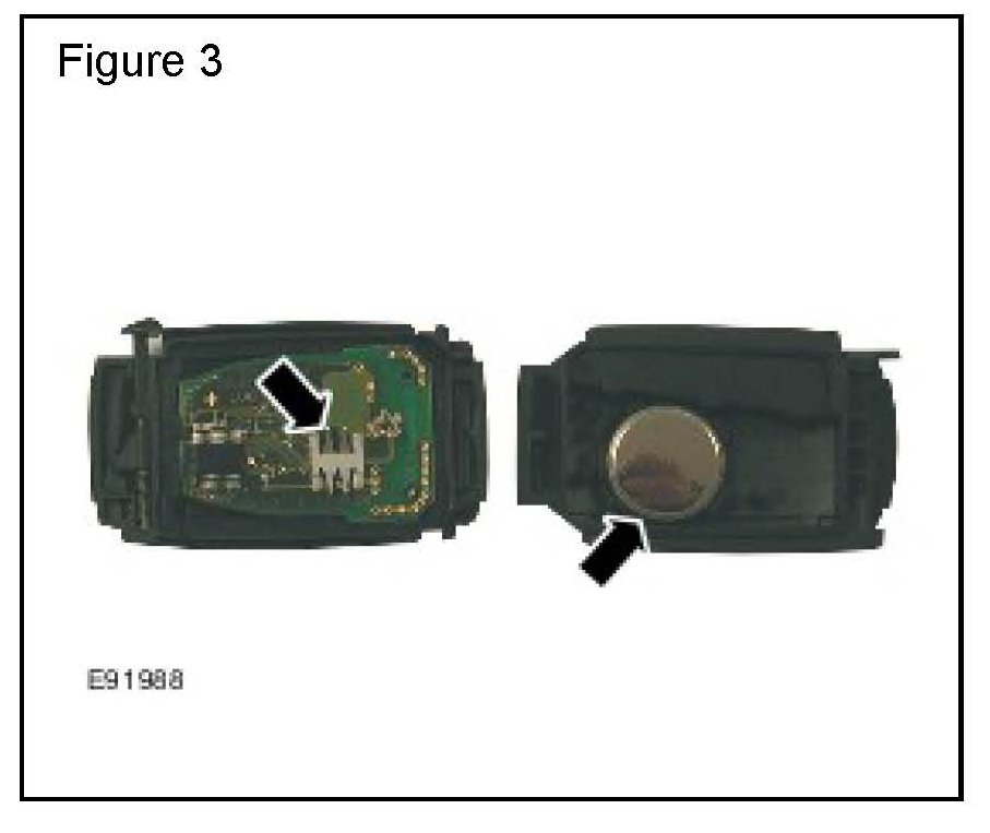 Do NOT touch the green printed circuit board, battery, or the battery contacts. Oil or any other contamination on either component can affect the Smart Key performance. (Figure 3)