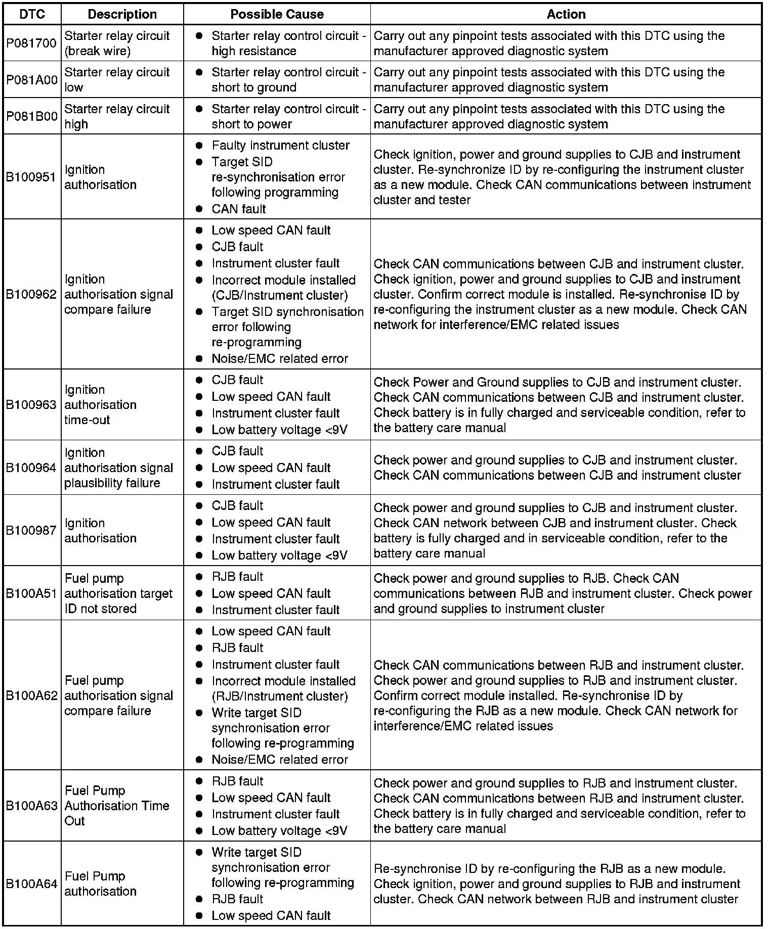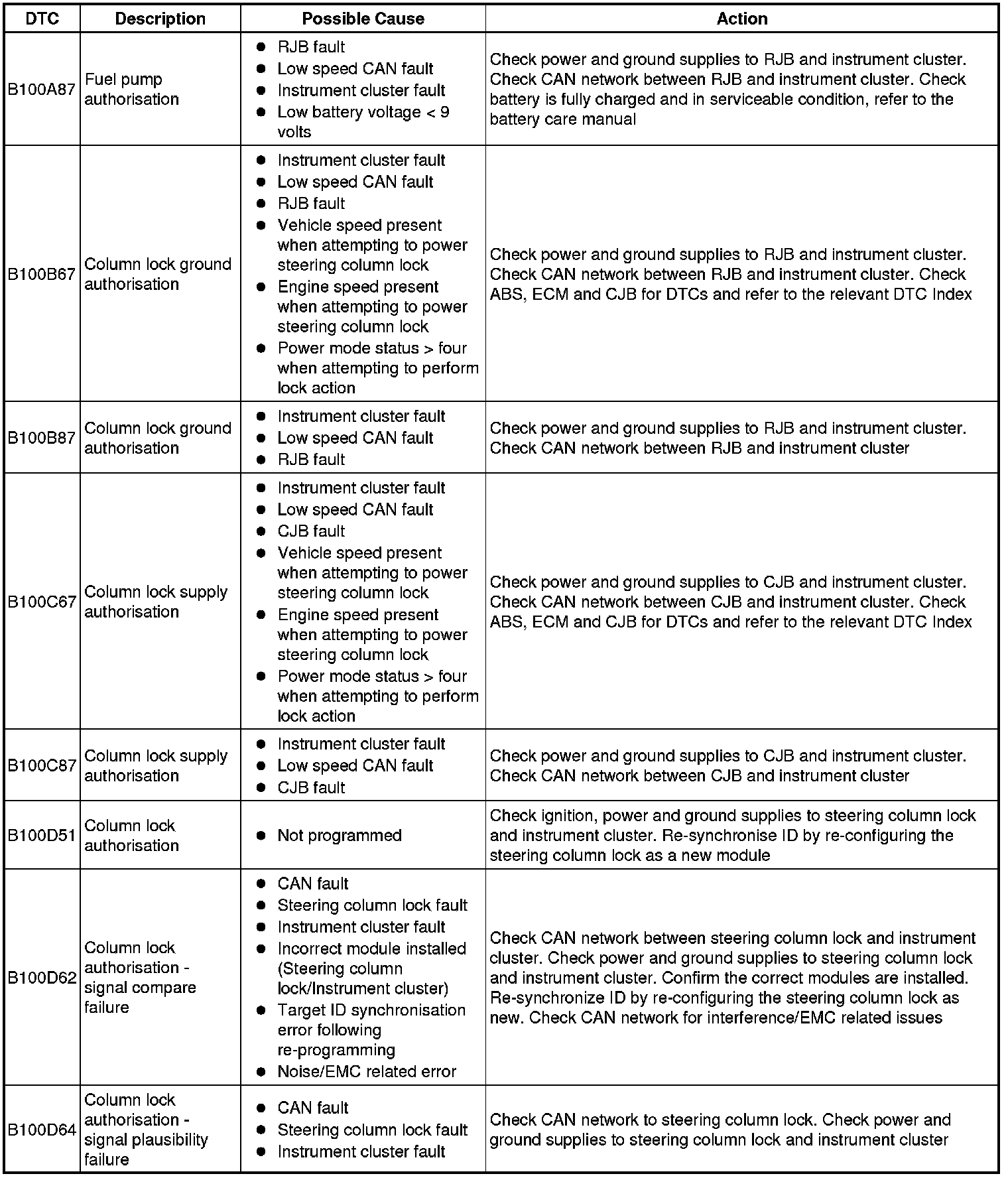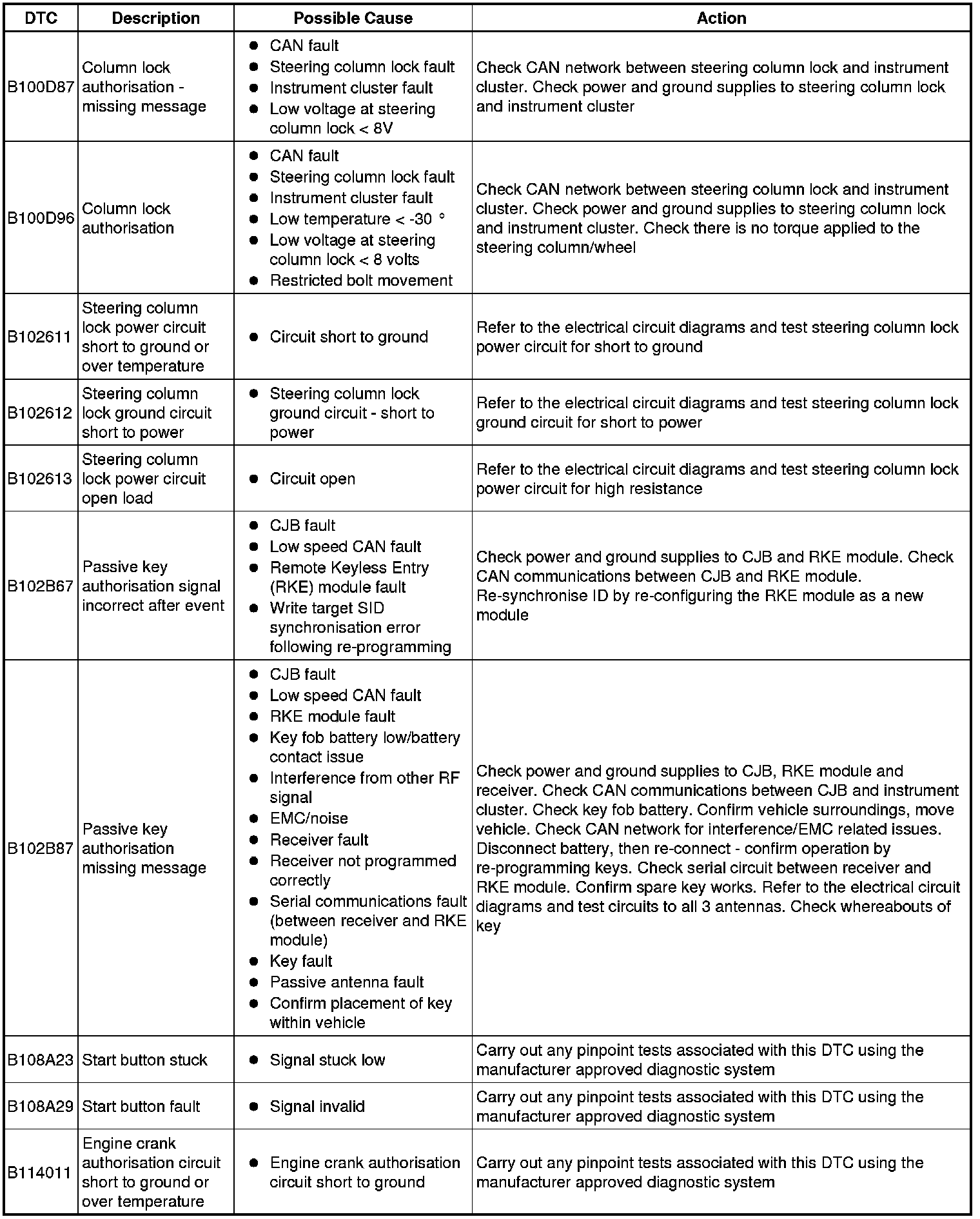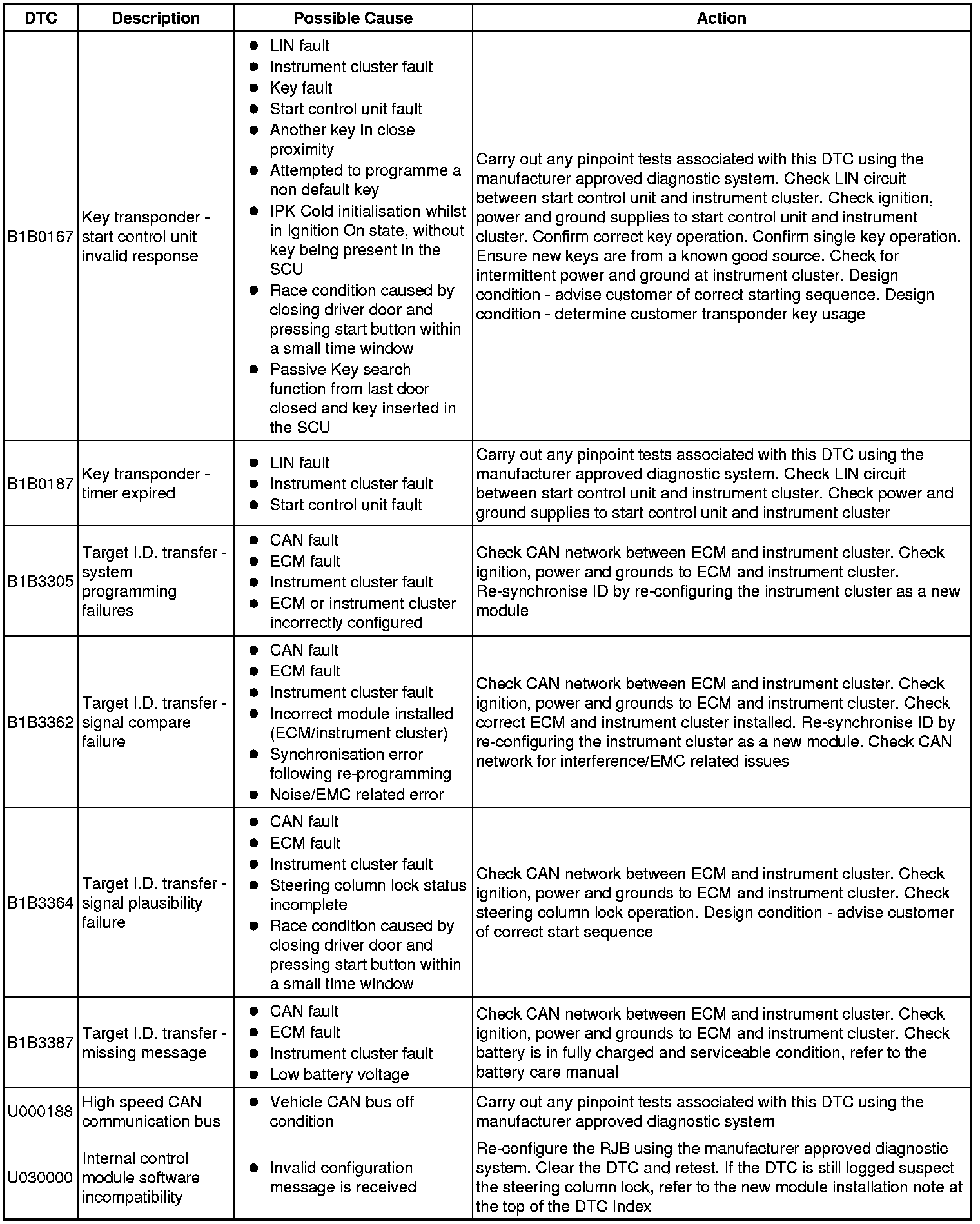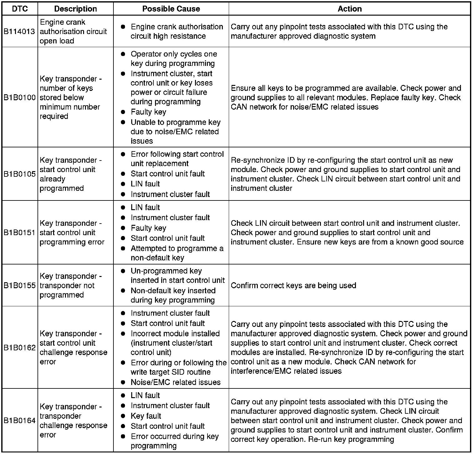 Generic scan tools may not read the codes listed, or may read only five digit codes. Match the five digits from the scan tool to the first five digits of the seven digit code listed to identify the fault (the last two digits give additional information read by the manufacturer approved diagnostic system).