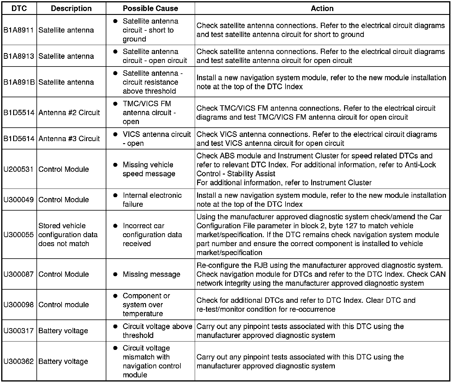 Generic scan tools may not read the codes listed, or may read only five digit codes. Match the five digits from the scan tool to the first five digits of the seven digit code listed to identify the fault (the last two digits give additional information read by the manufacturer approved diagnostic system).