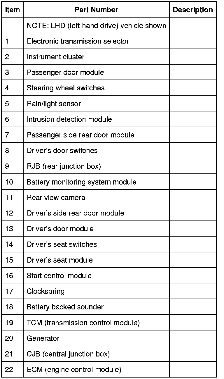 COMPONENT LOCATION - LIN BUS (Sheet 1 of 2)