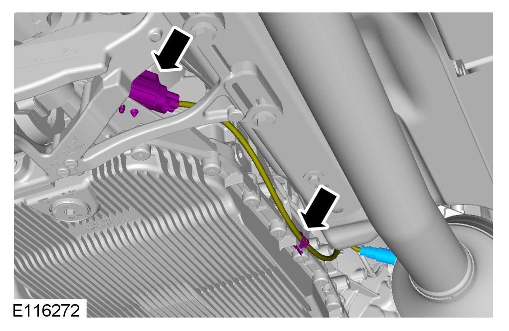 CAUTION: Make sure the catalyst monitor sensor wiring harness is not twisted more than 180 degrees and is not in contact with either the exhaust or driveshaft.