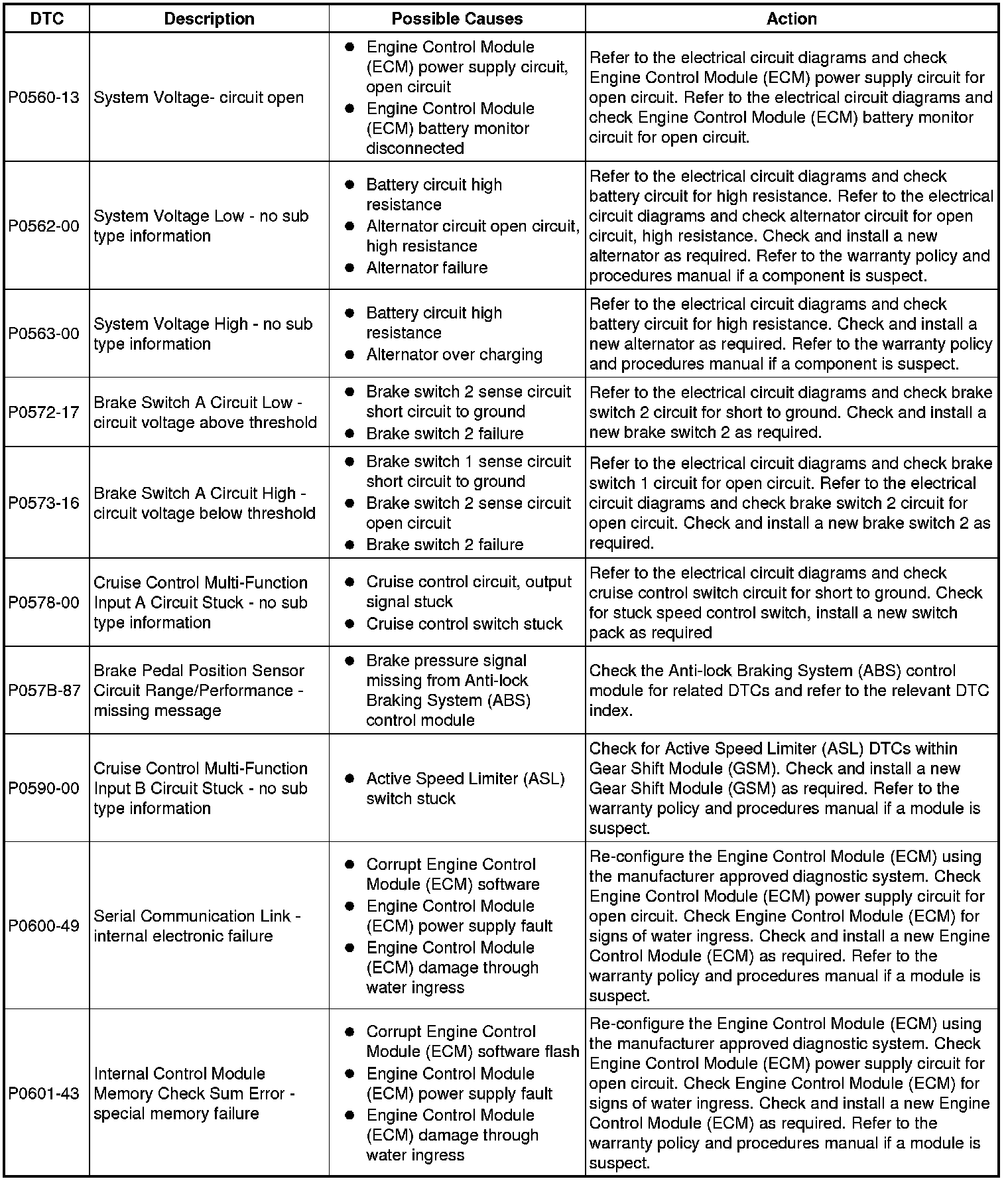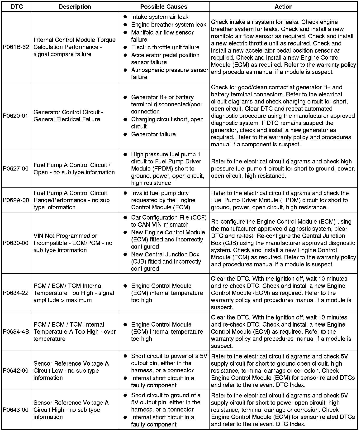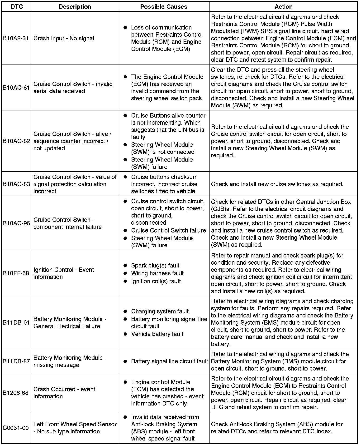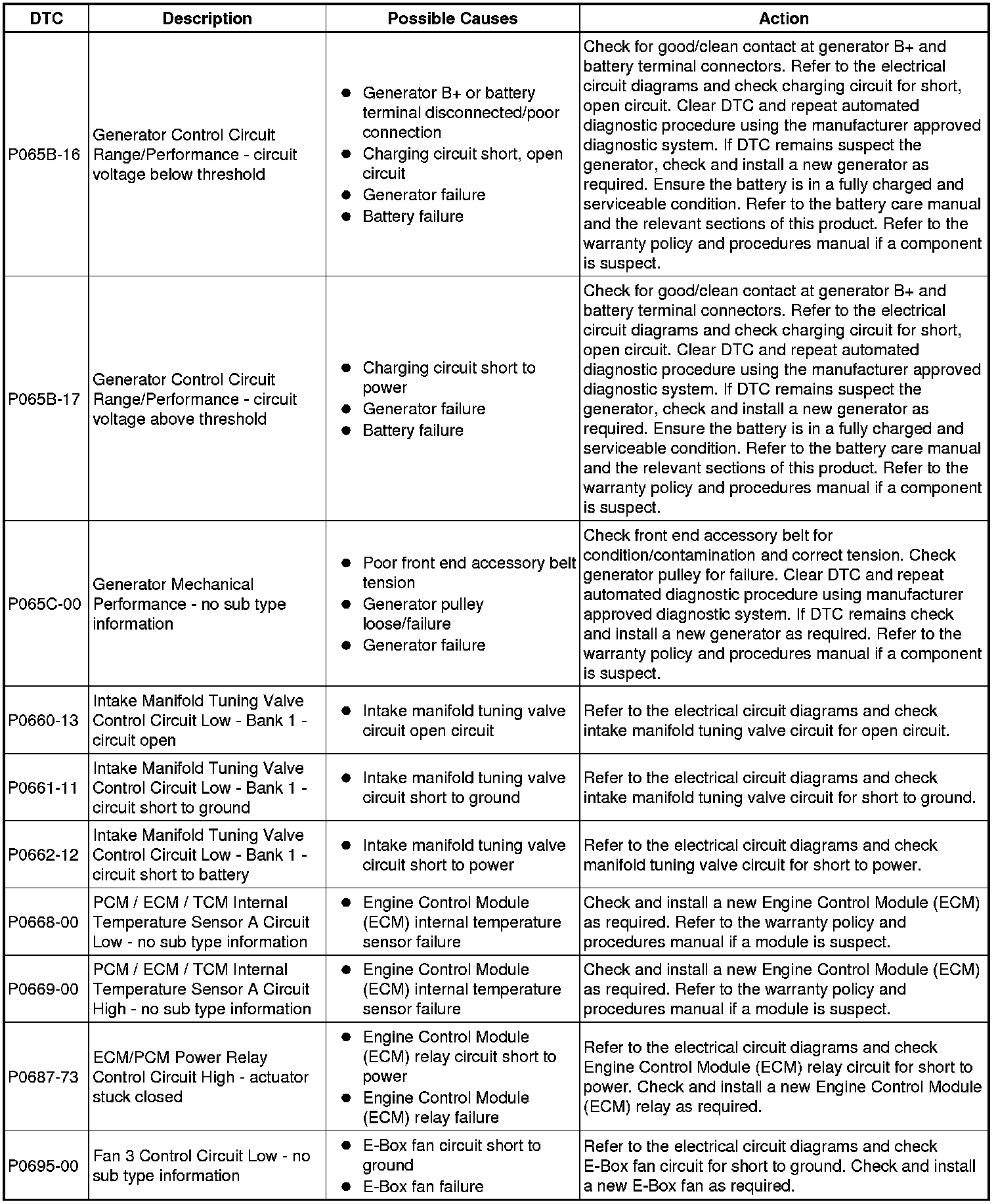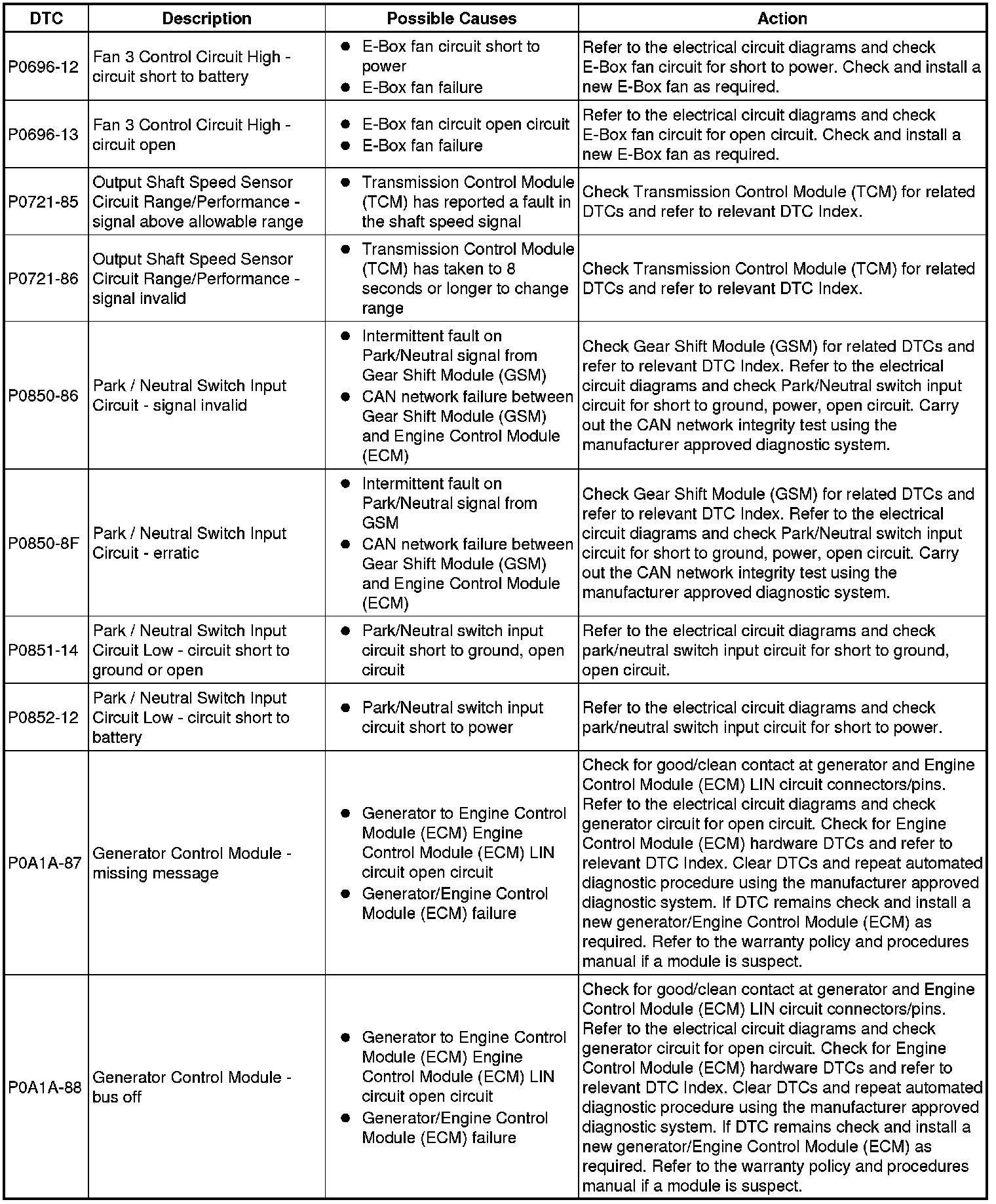 Generic scan tools may not read the codes listed, or may read only five digit codes. Match the five digits from the scan tool to the first five digits of the seven digit code listed to identify the fault (the last two digits give additional information read by the manufacturer-approved diagnostic system).