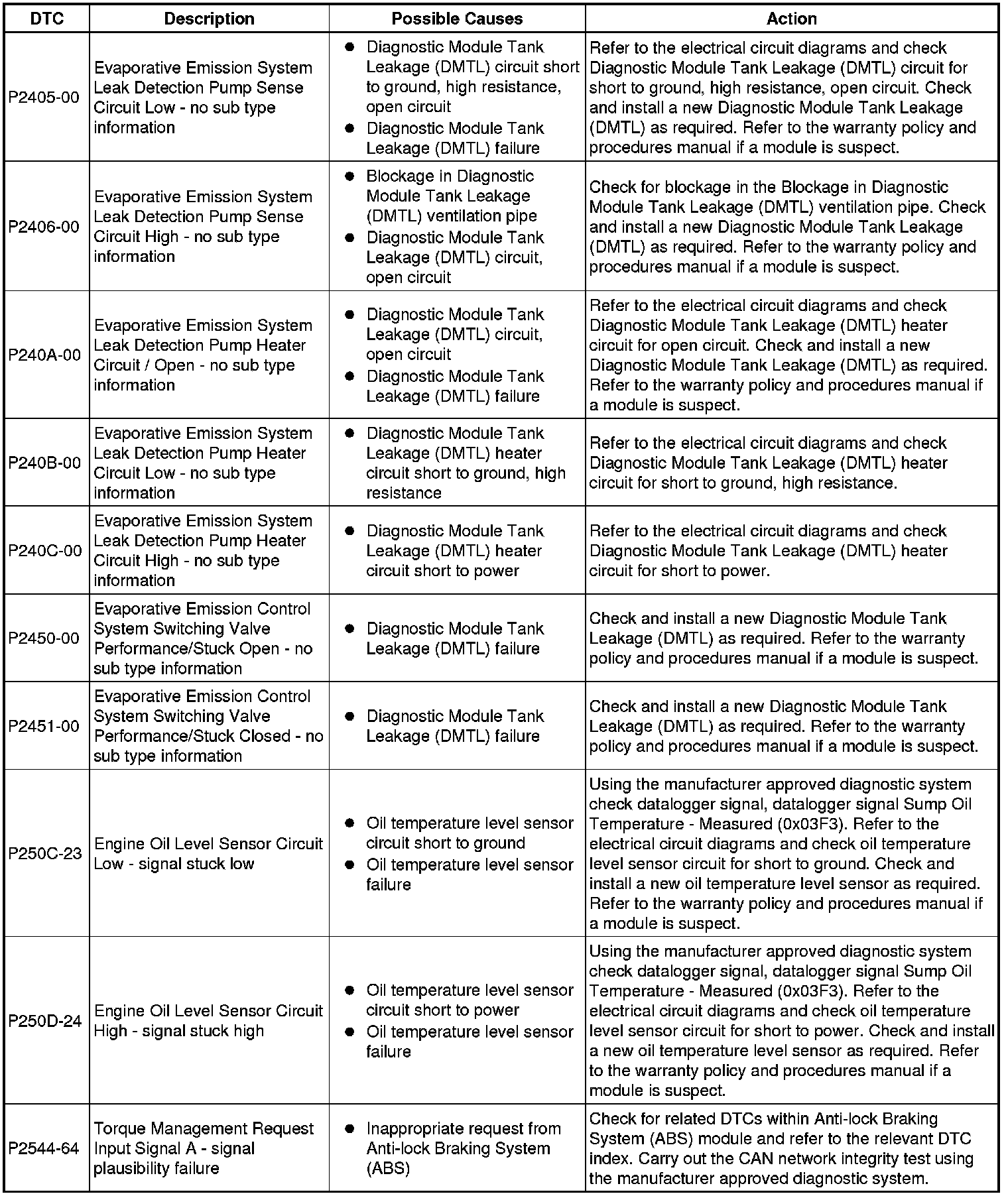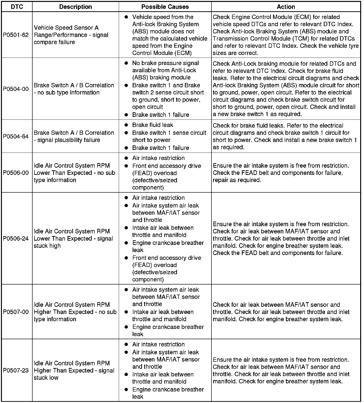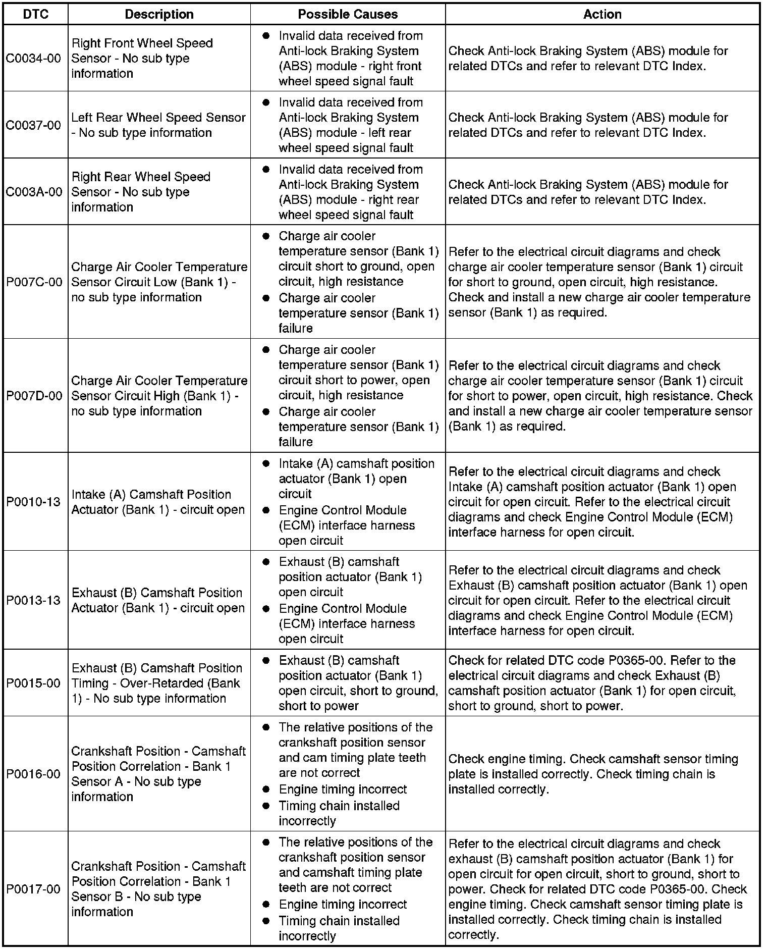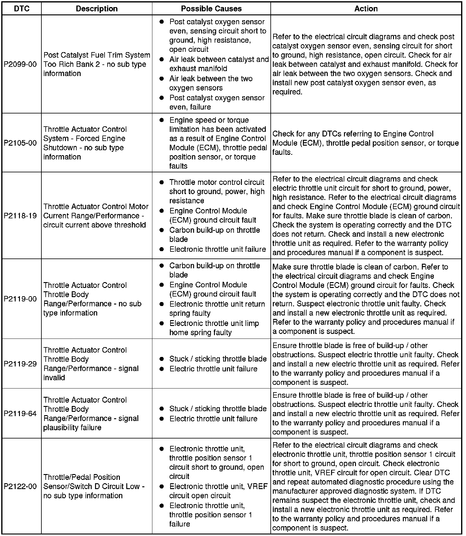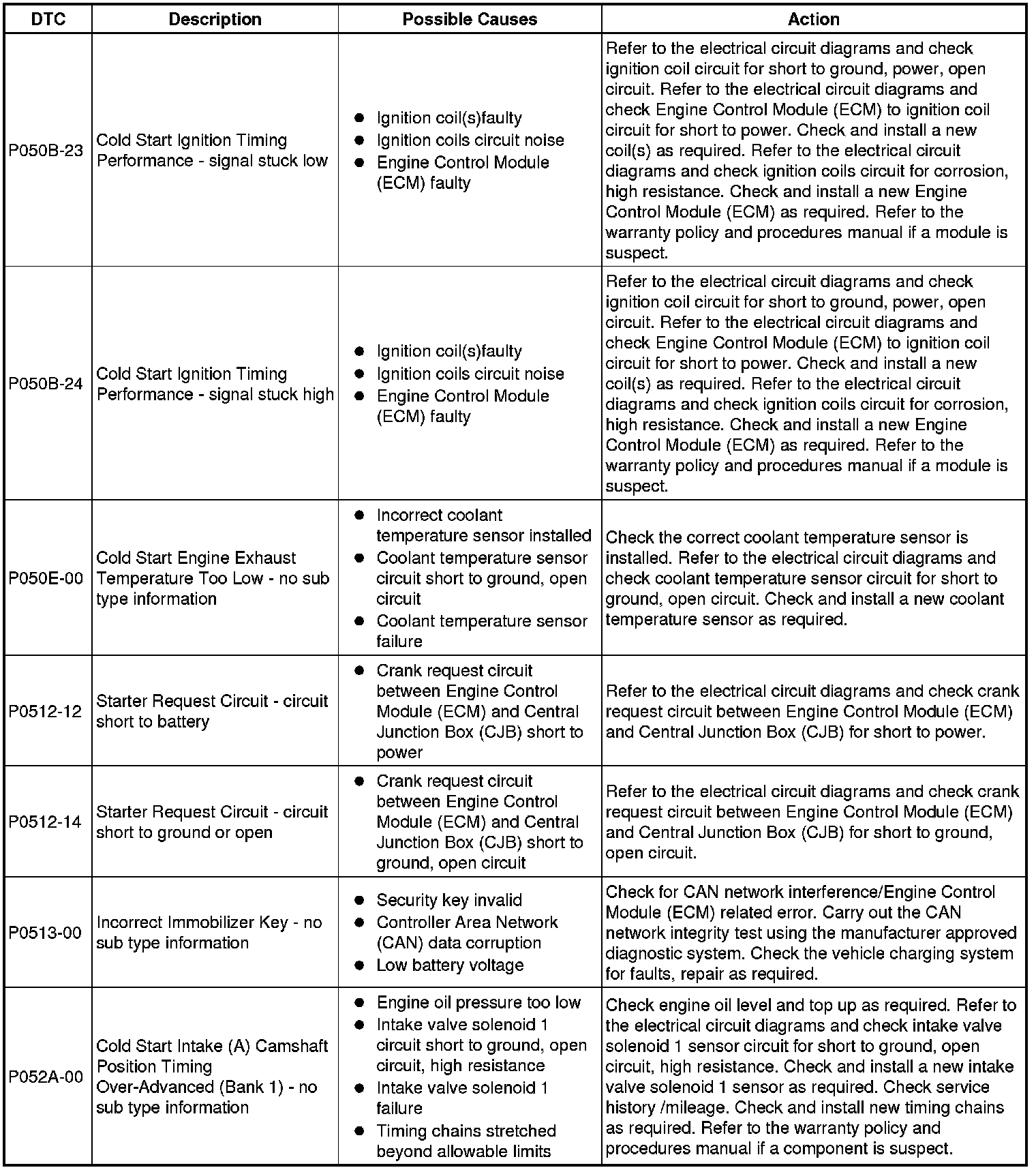 Generic scan tools may not read the codes listed, or may read only five digit codes. Match the five digits from the scan tool to the first five digits of the seven digit code listed to identify the fault (the last two digits give additional information read by the manufacturer-approved diagnostic system).