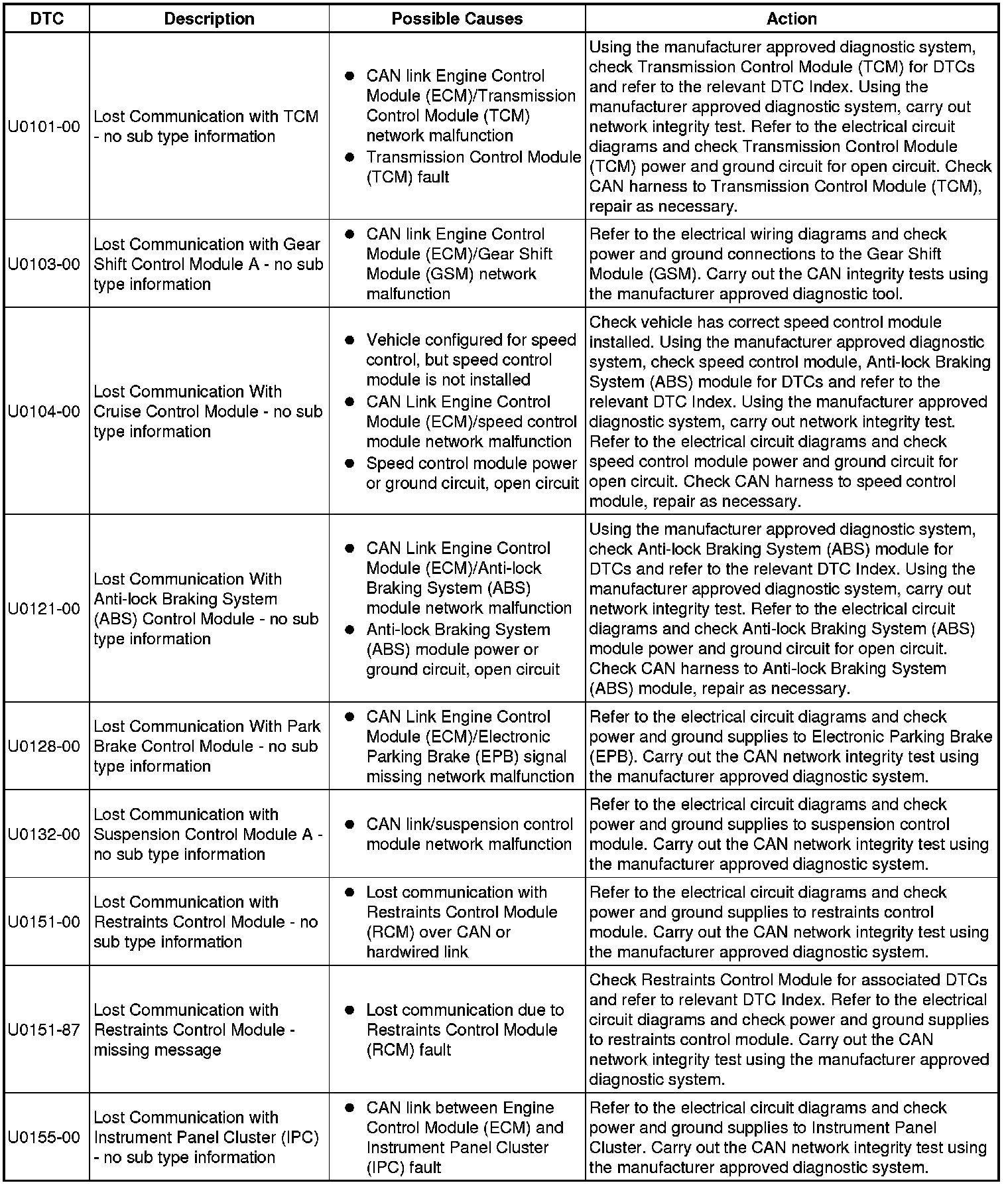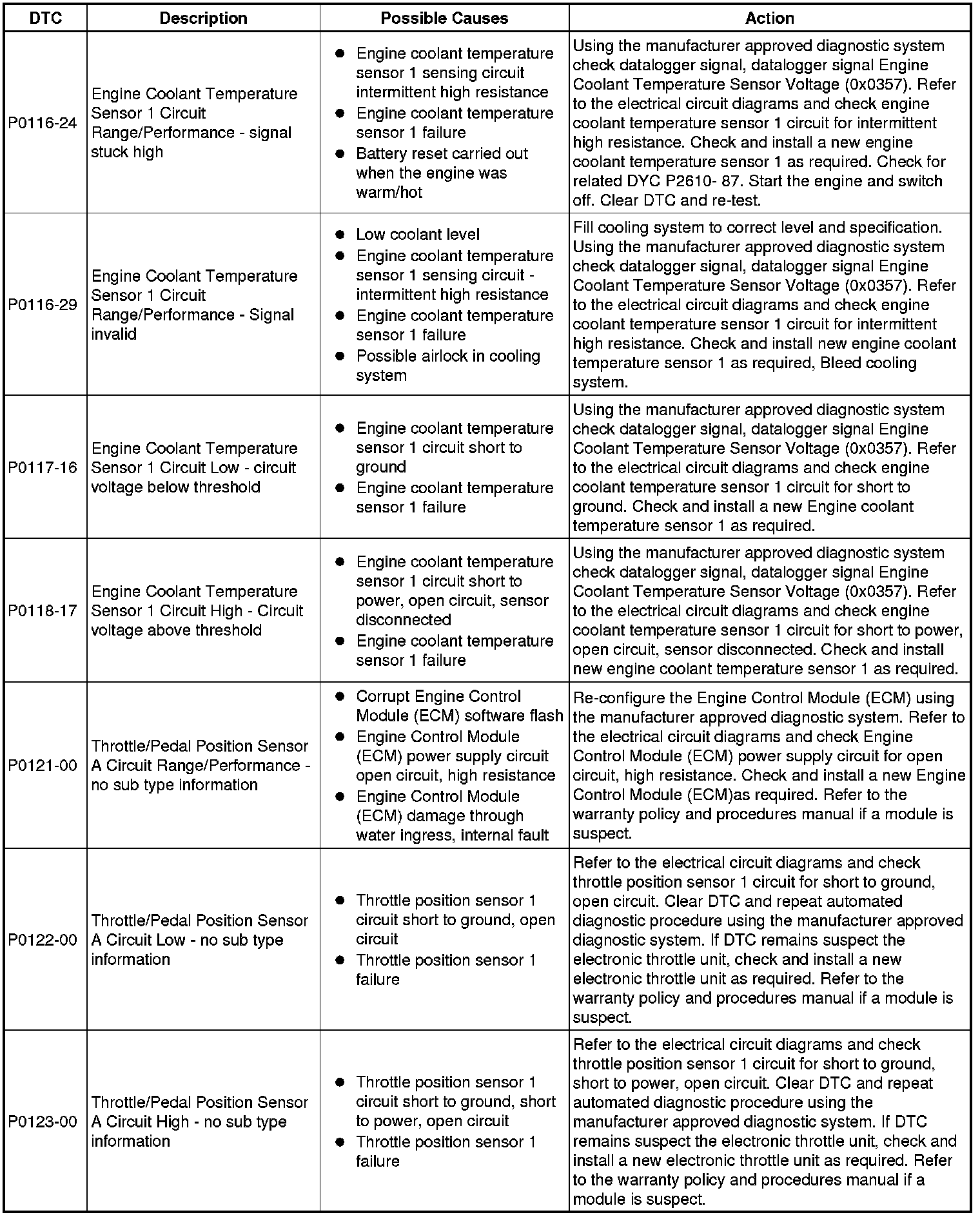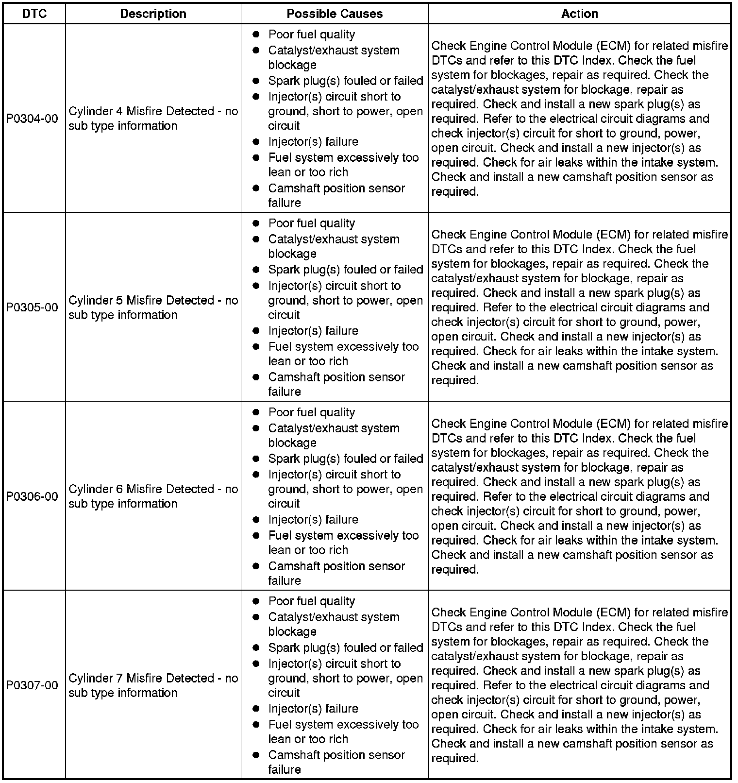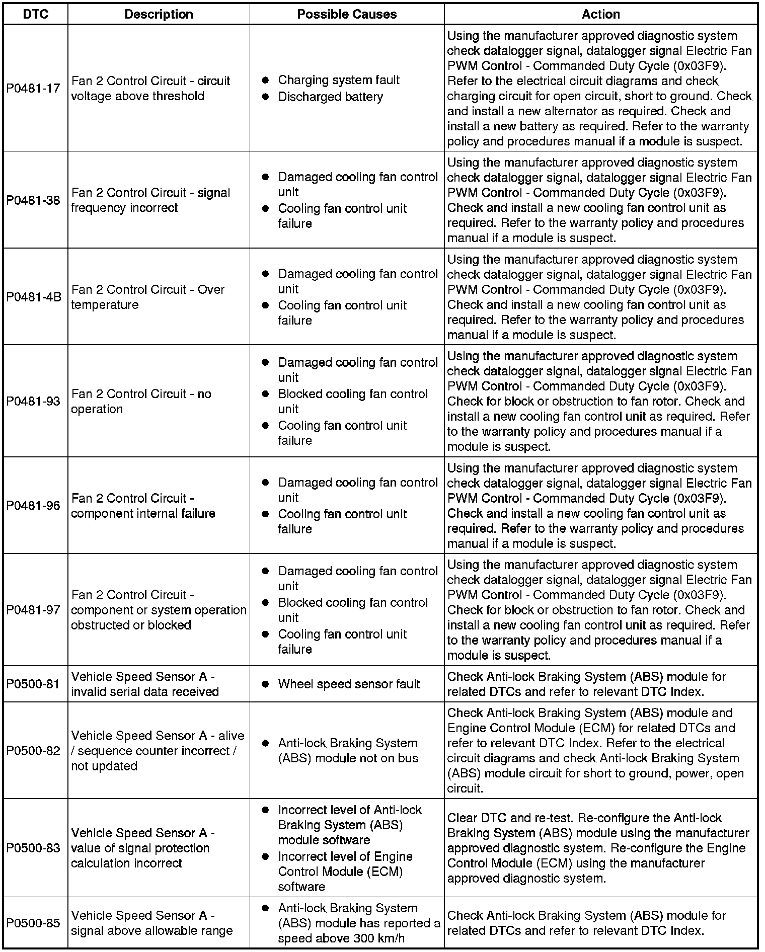 Generic scan tools may not read the codes listed, or may read only five digit codes. Match the five digits from the scan tool to the first five digits of the seven digit code listed to identify the fault (the last two digits give additional information read by the manufacturer-approved diagnostic system).