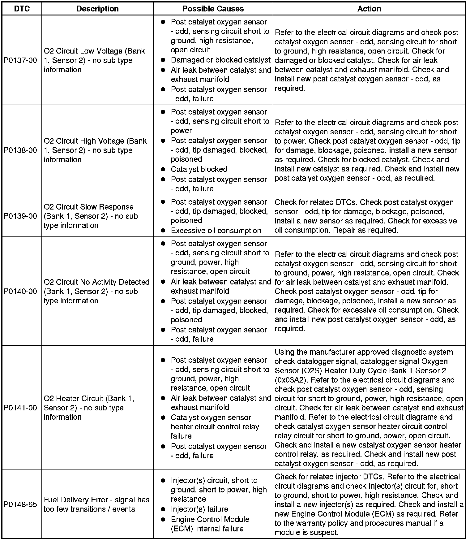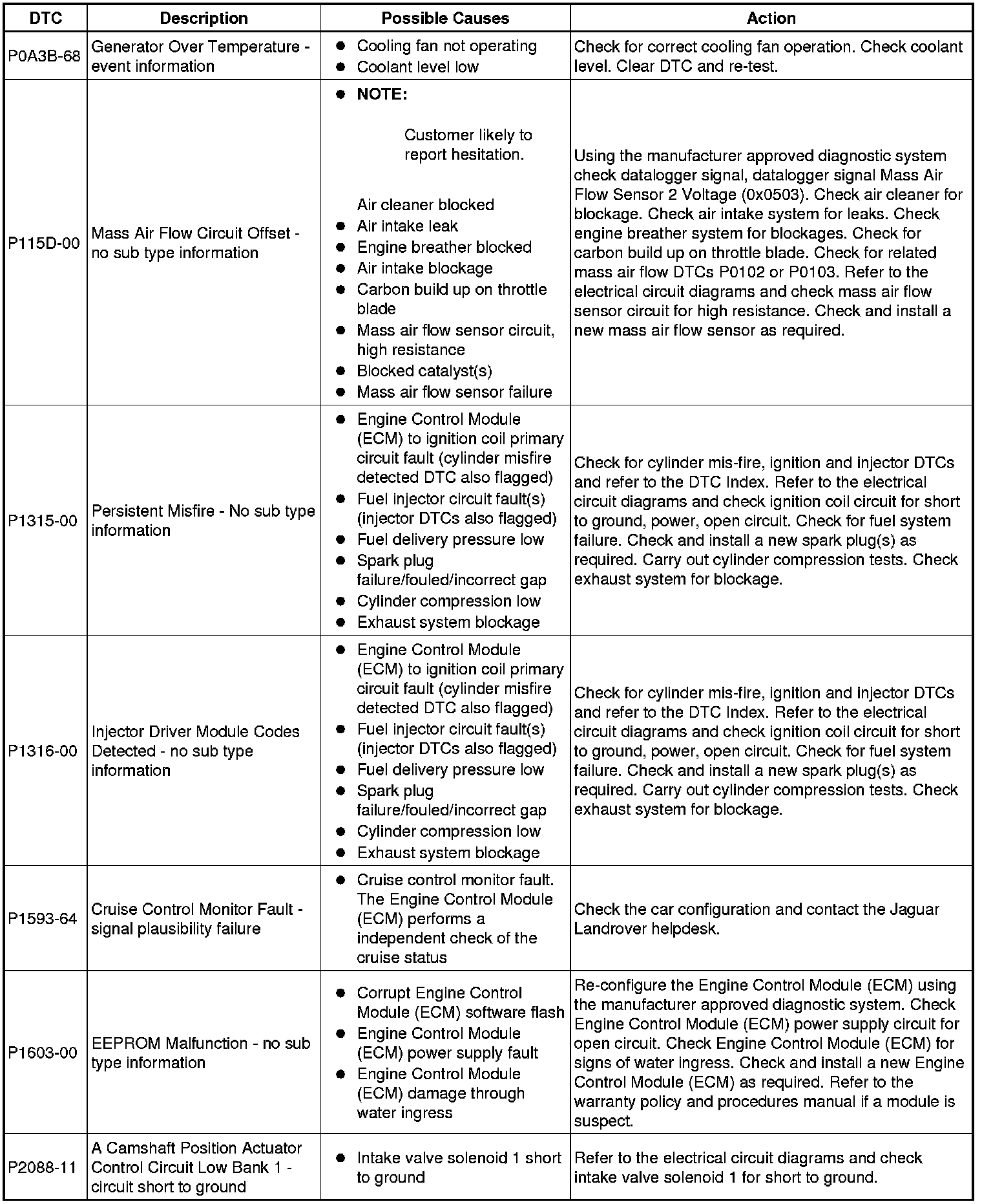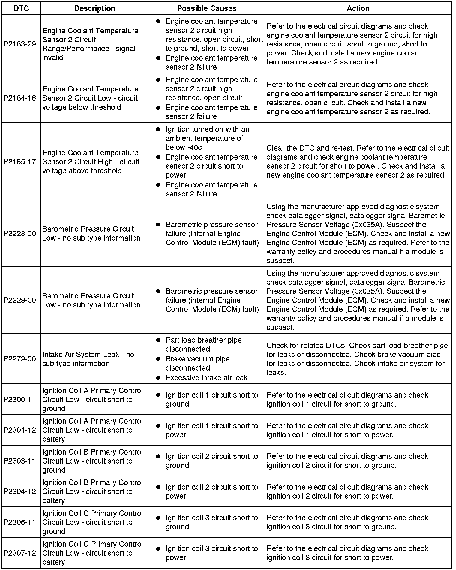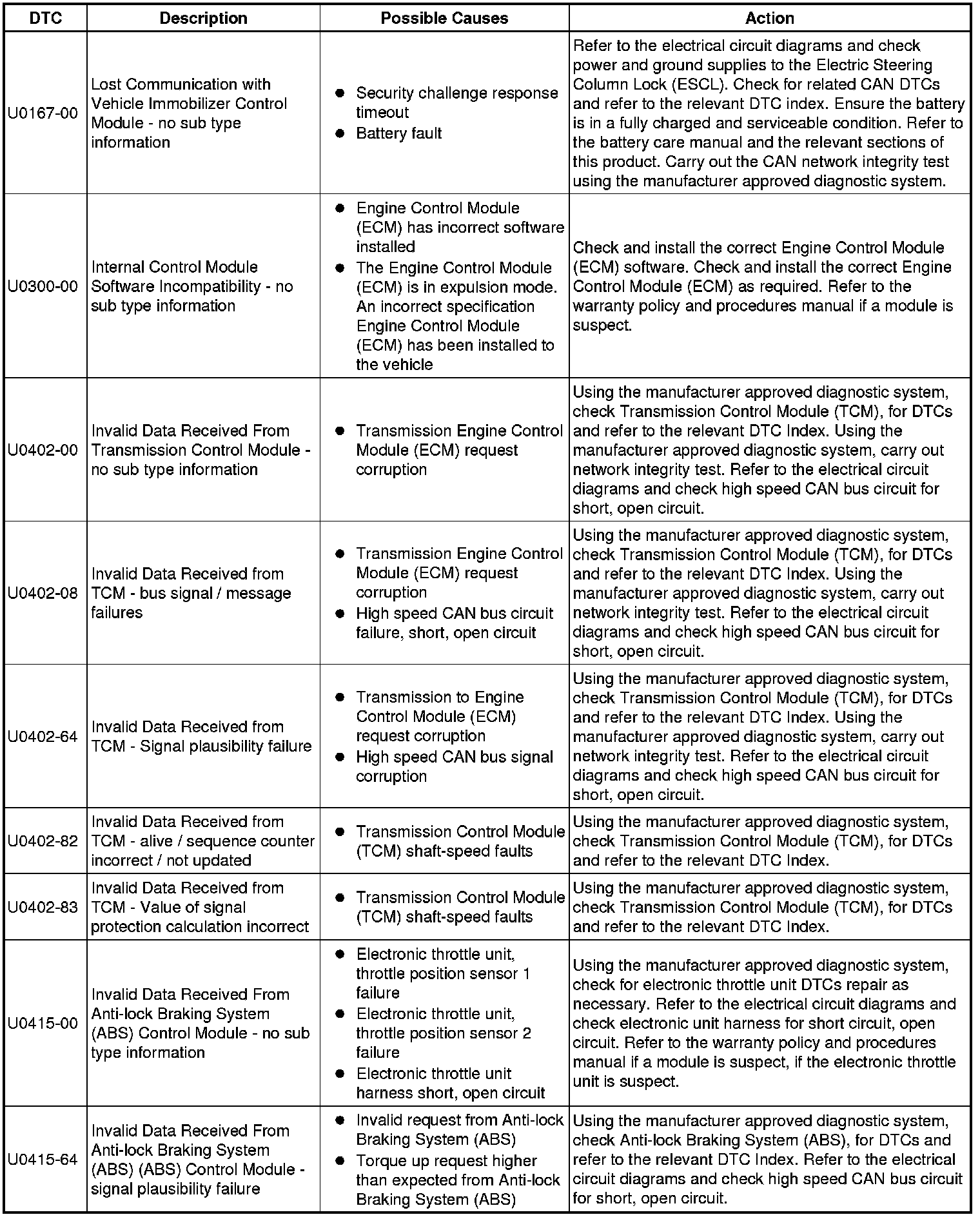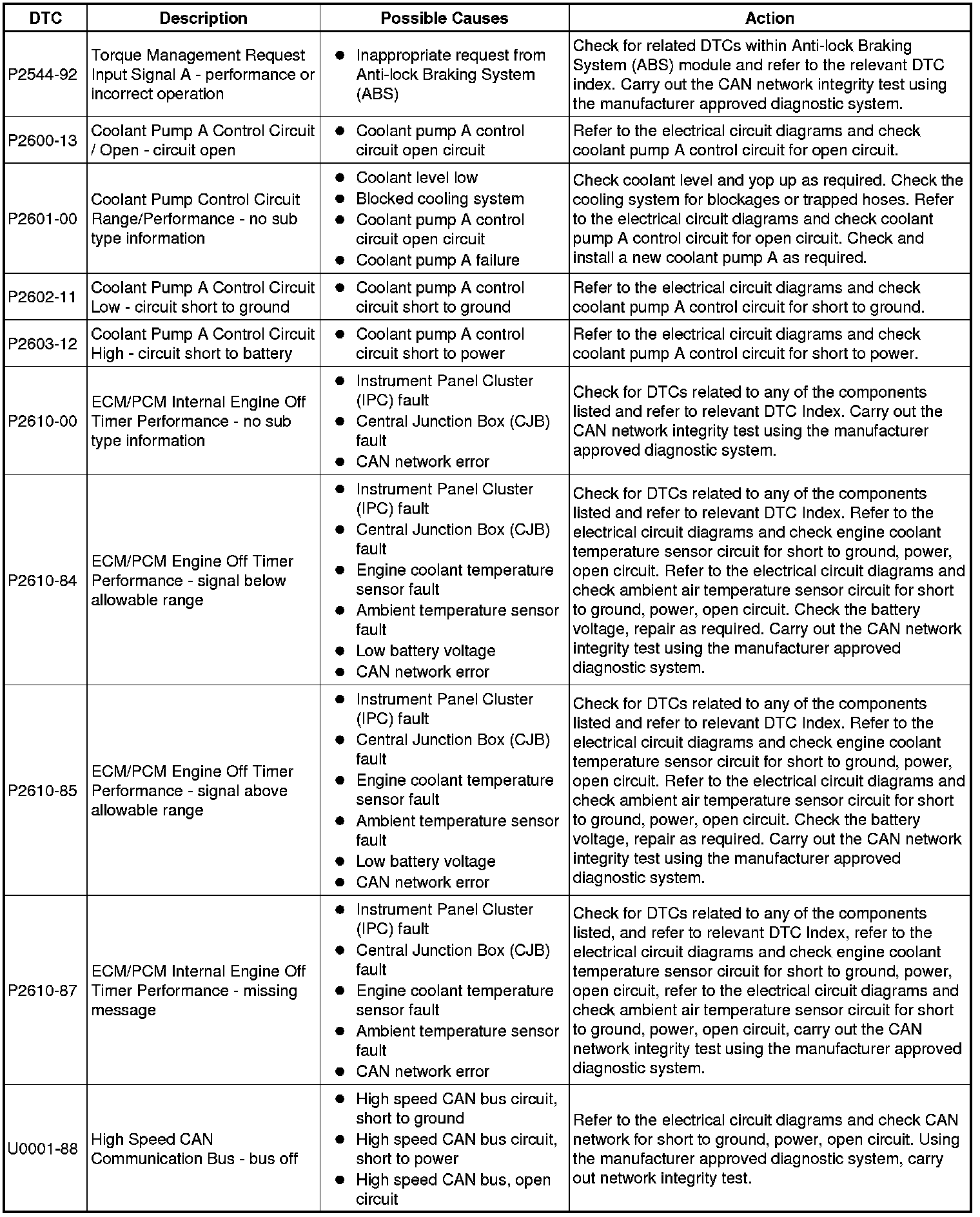 Generic scan tools may not read the codes listed, or may read only five digit codes. Match the five digits from the scan tool to the first five digits of the seven digit code listed to identify the fault (the last two digits give additional information read by the manufacturer-approved diagnostic system).