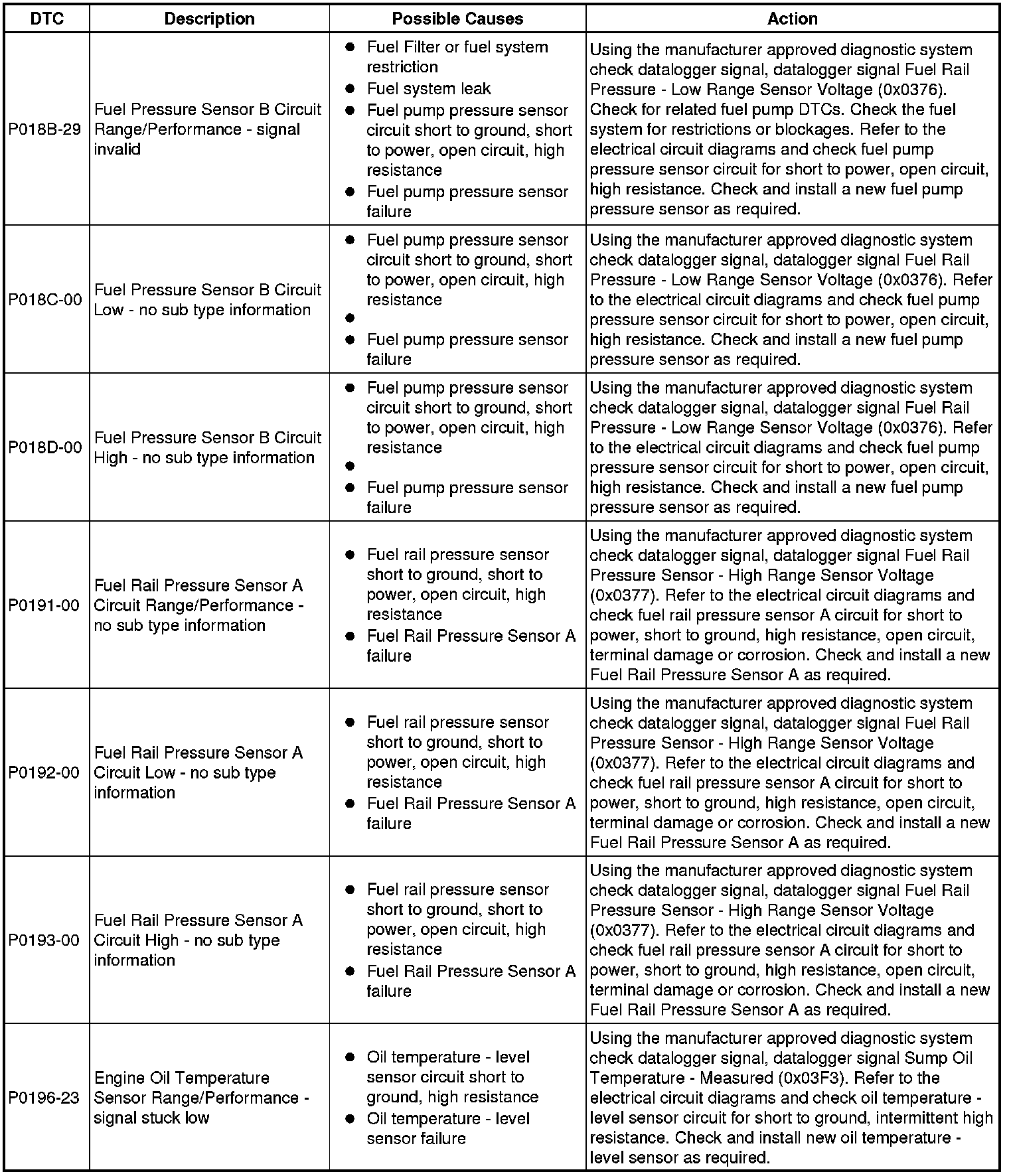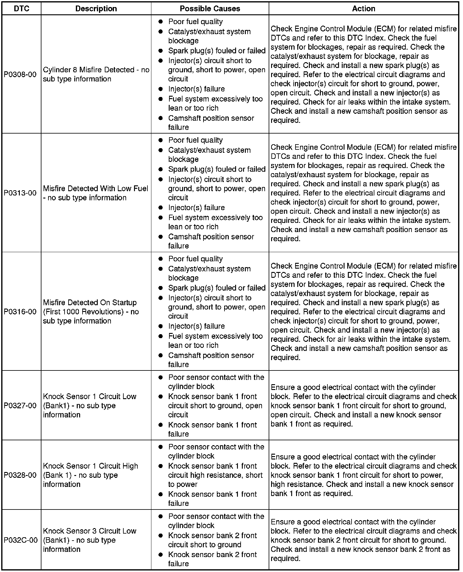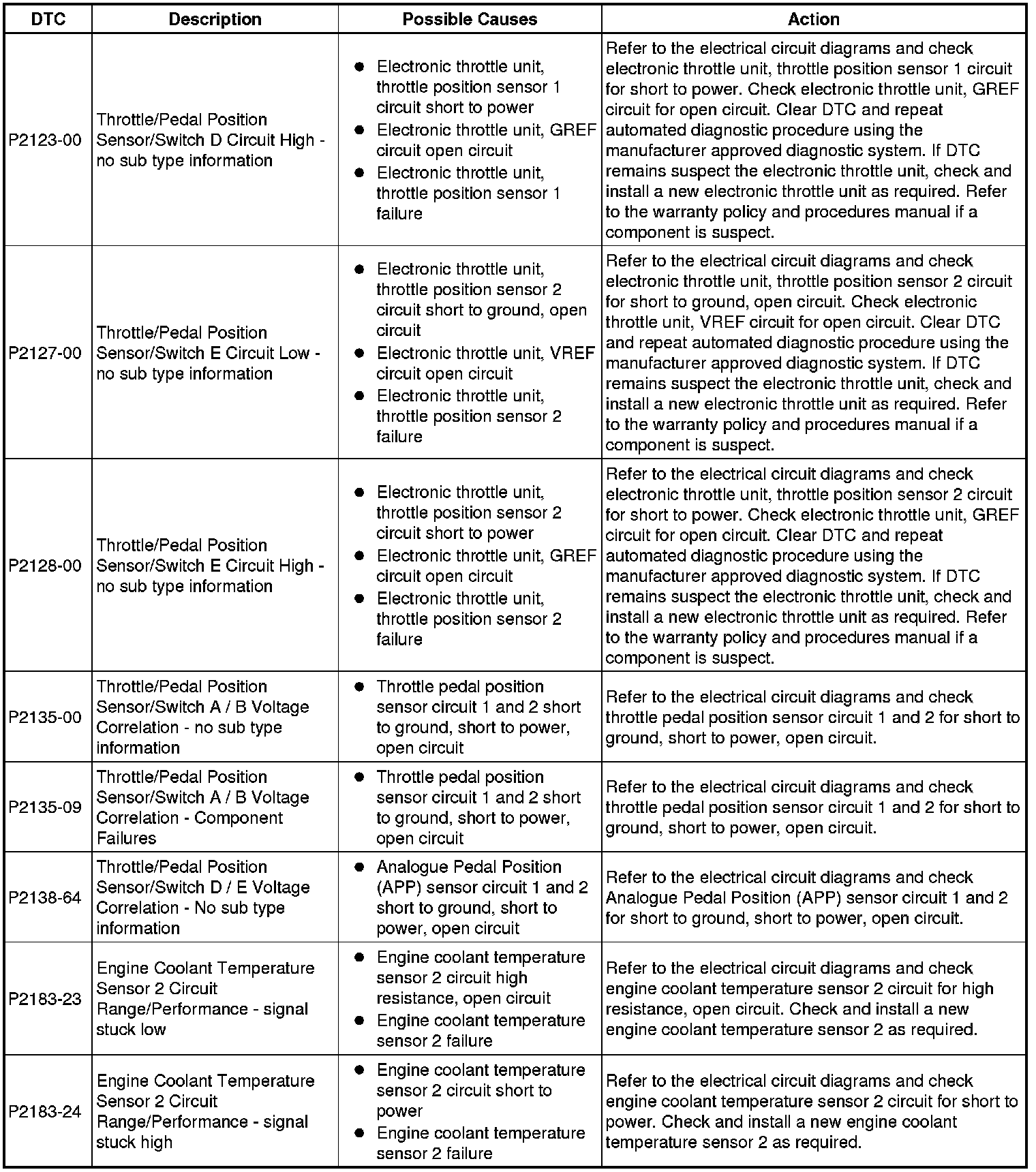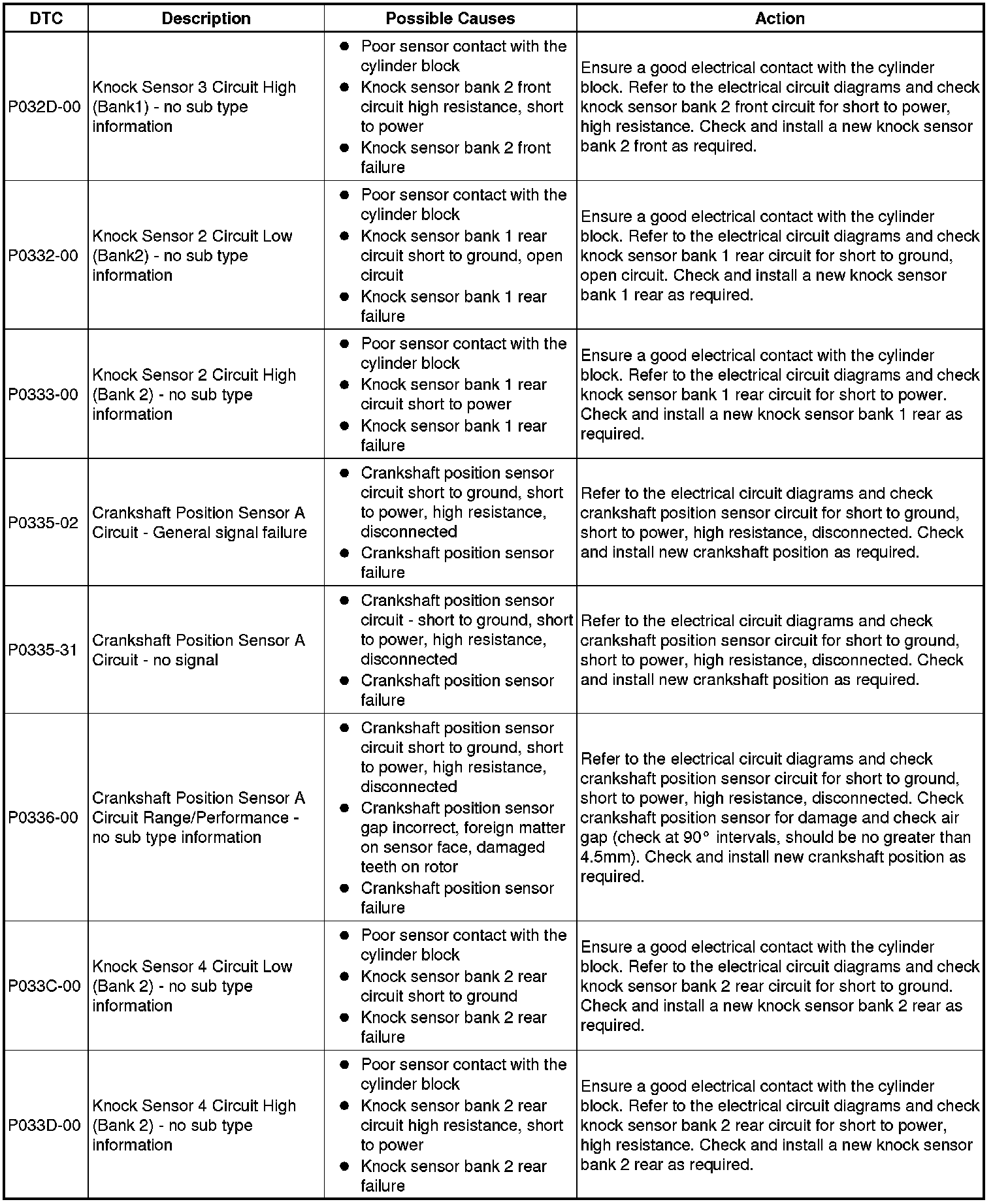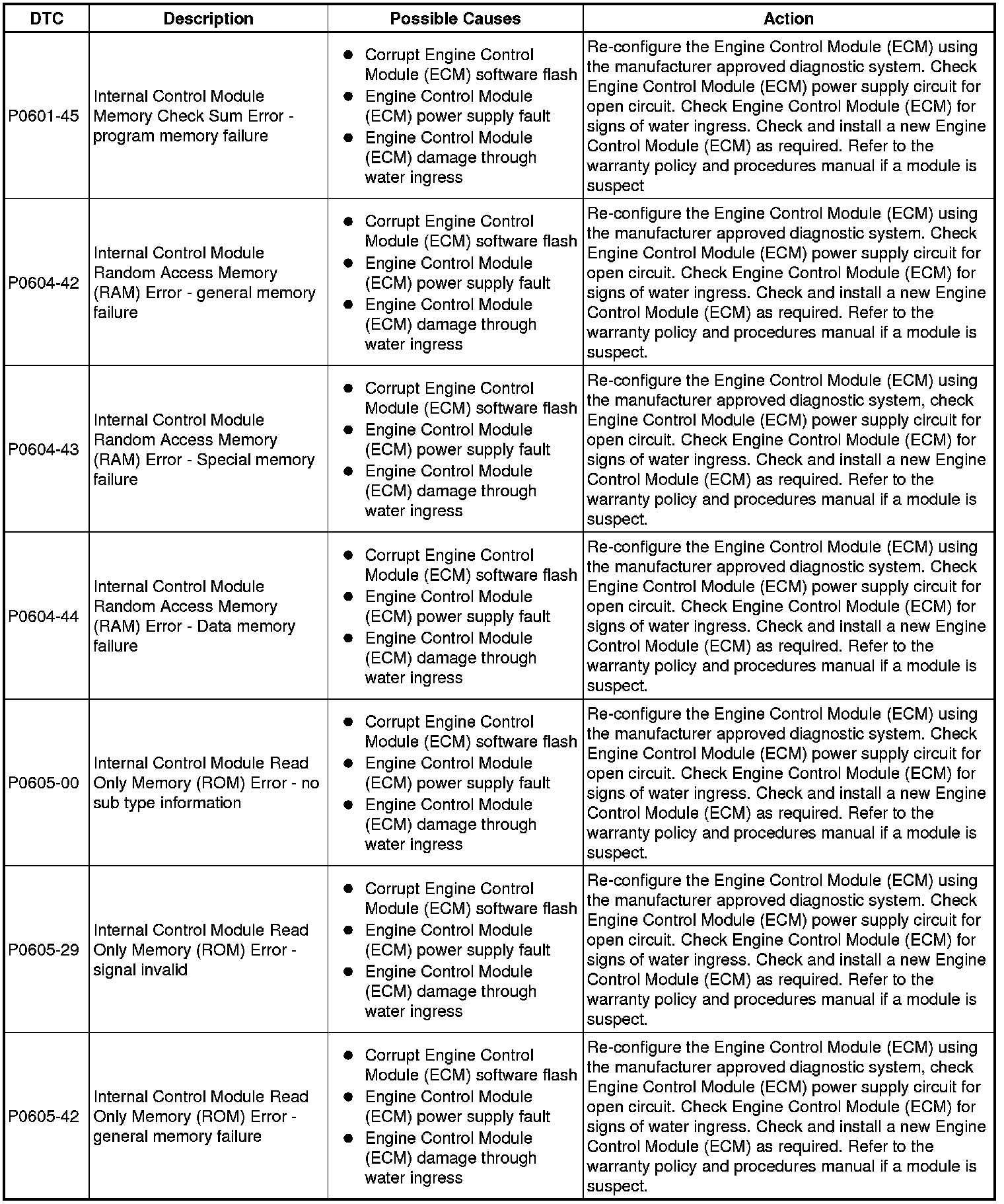 Generic scan tools may not read the codes listed, or may read only five digit codes. Match the five digits from the scan tool to the first five digits of the seven digit code listed to identify the fault (the last two digits give additional information read by the manufacturer-approved diagnostic system).