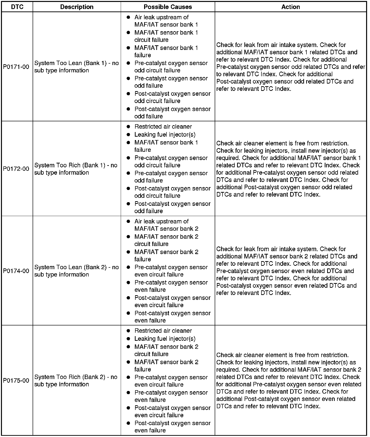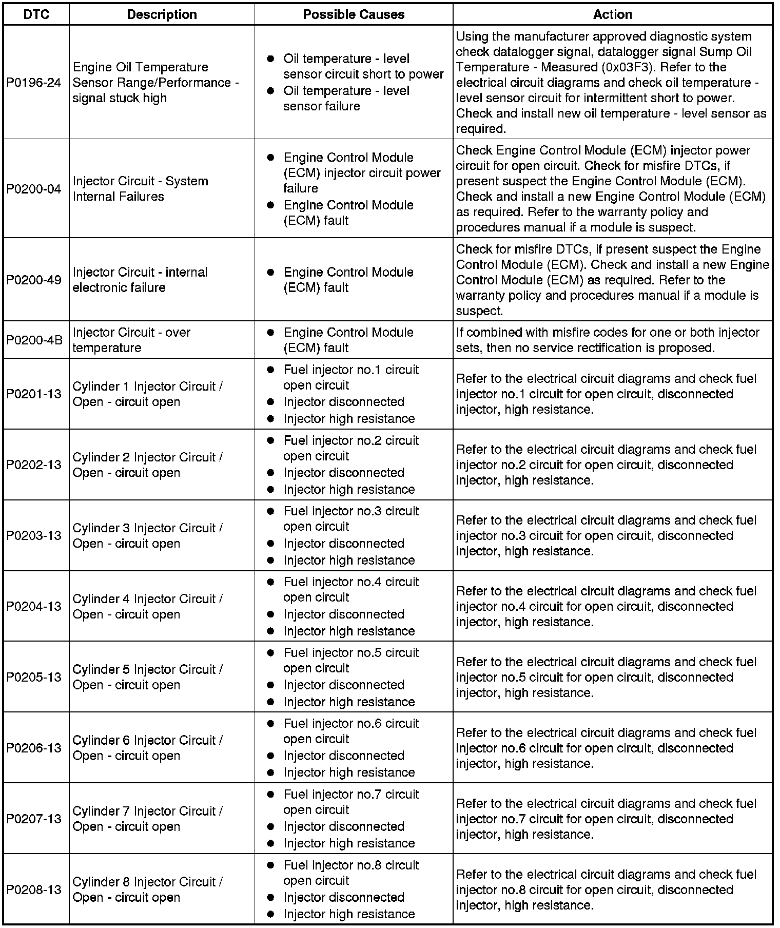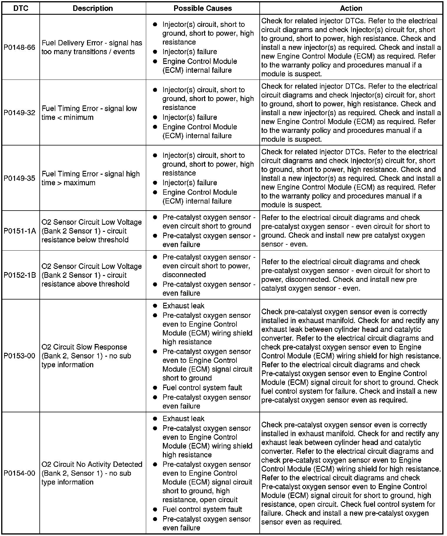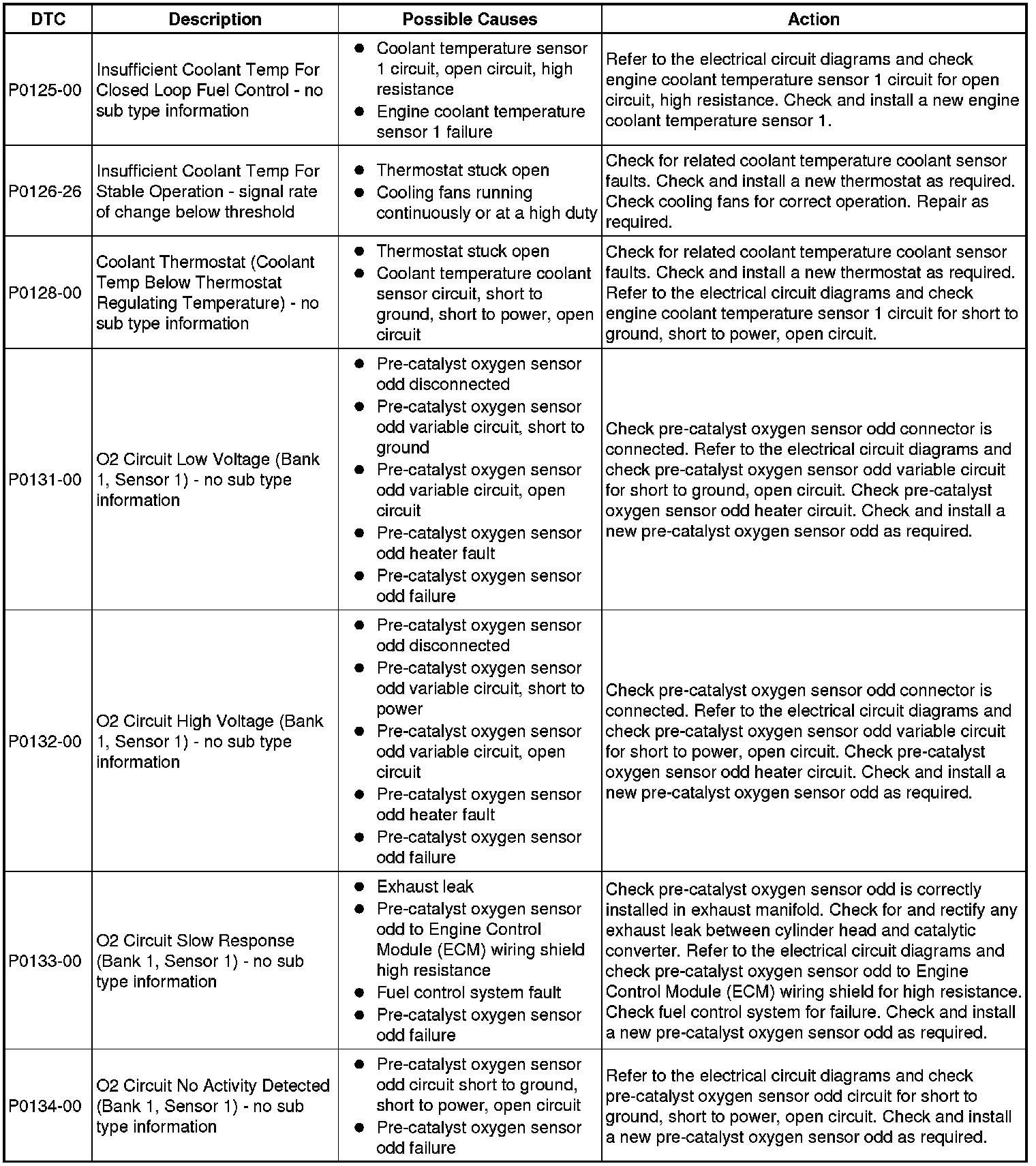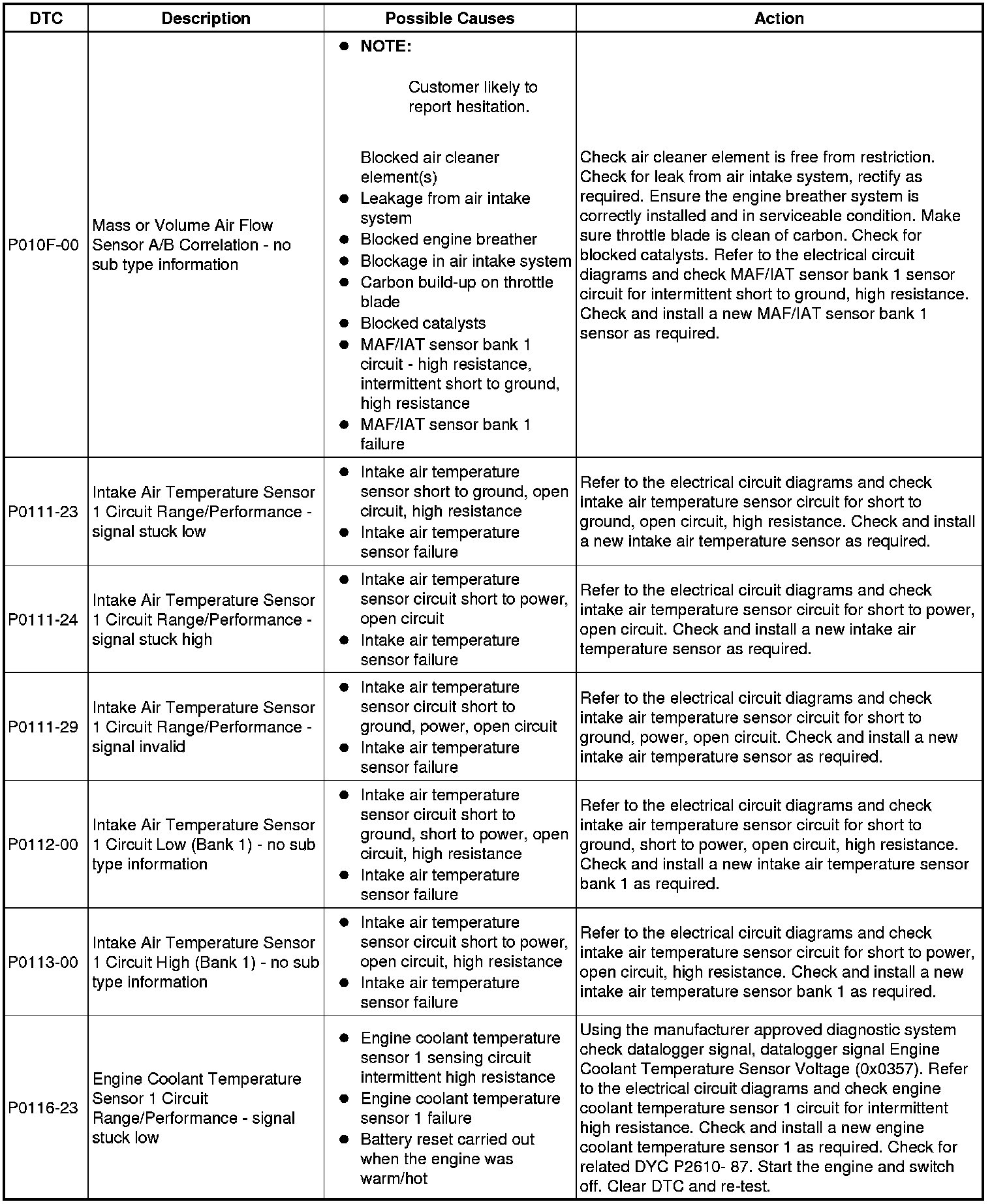 Generic scan tools may not read the codes listed, or may read only five digit codes. Match the five digits from the scan tool to the first five digits of the seven digit code listed to identify the fault (the last two digits give additional information read by the manufacturer-approved diagnostic system).