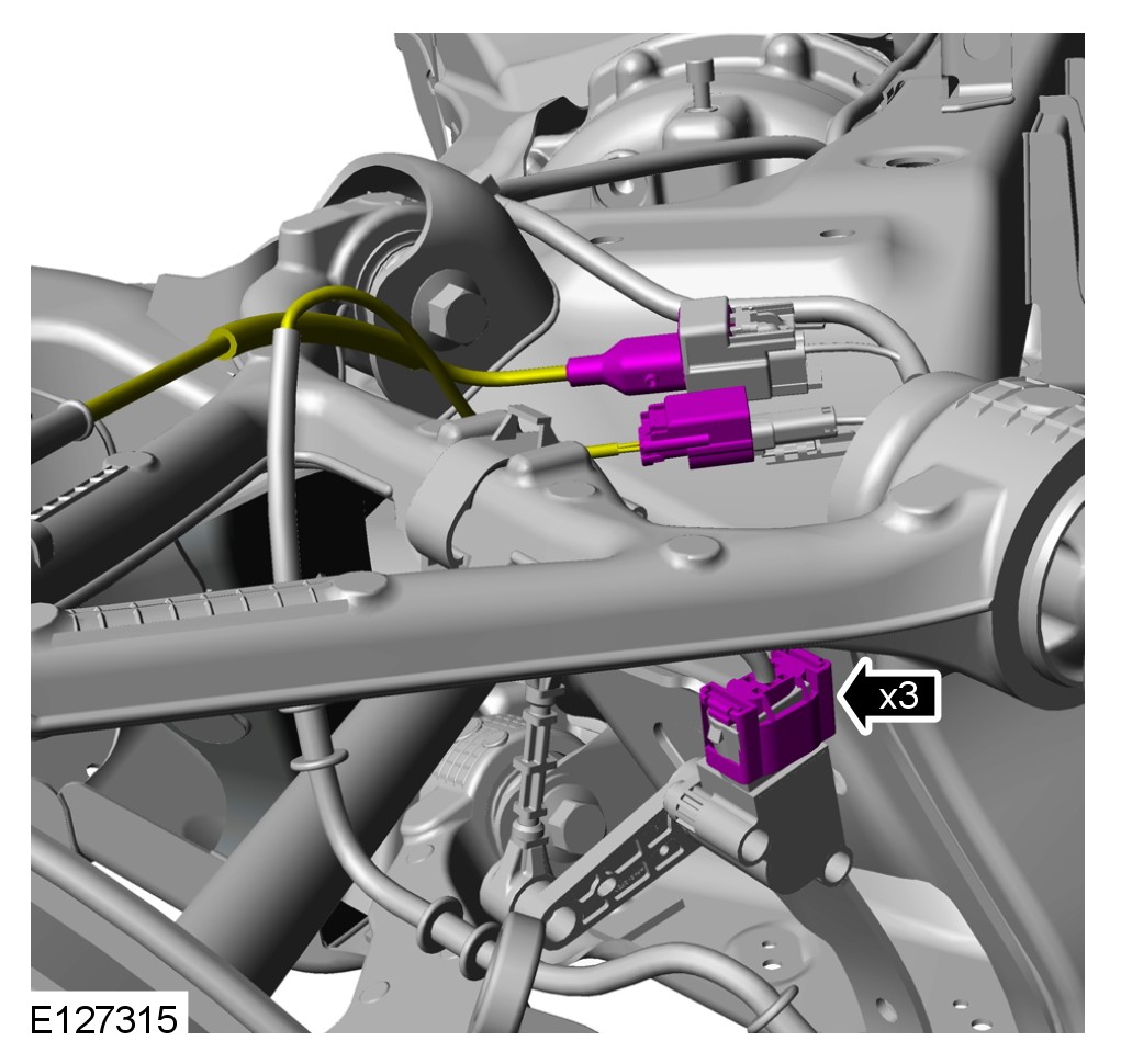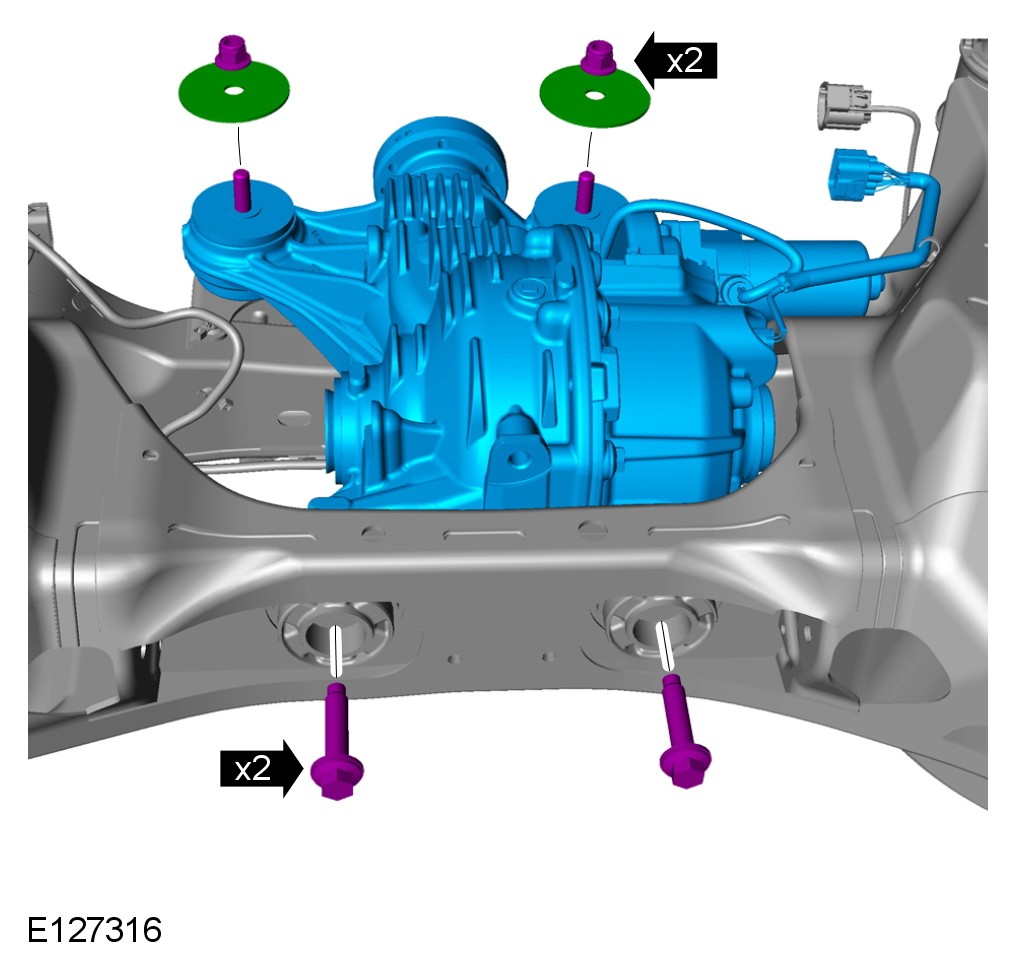 CAUTION: Make sure when lowering the rear subframe damage does not occur to the surrounding components. Failure to follow this instruction may result in damage to the vehicle.