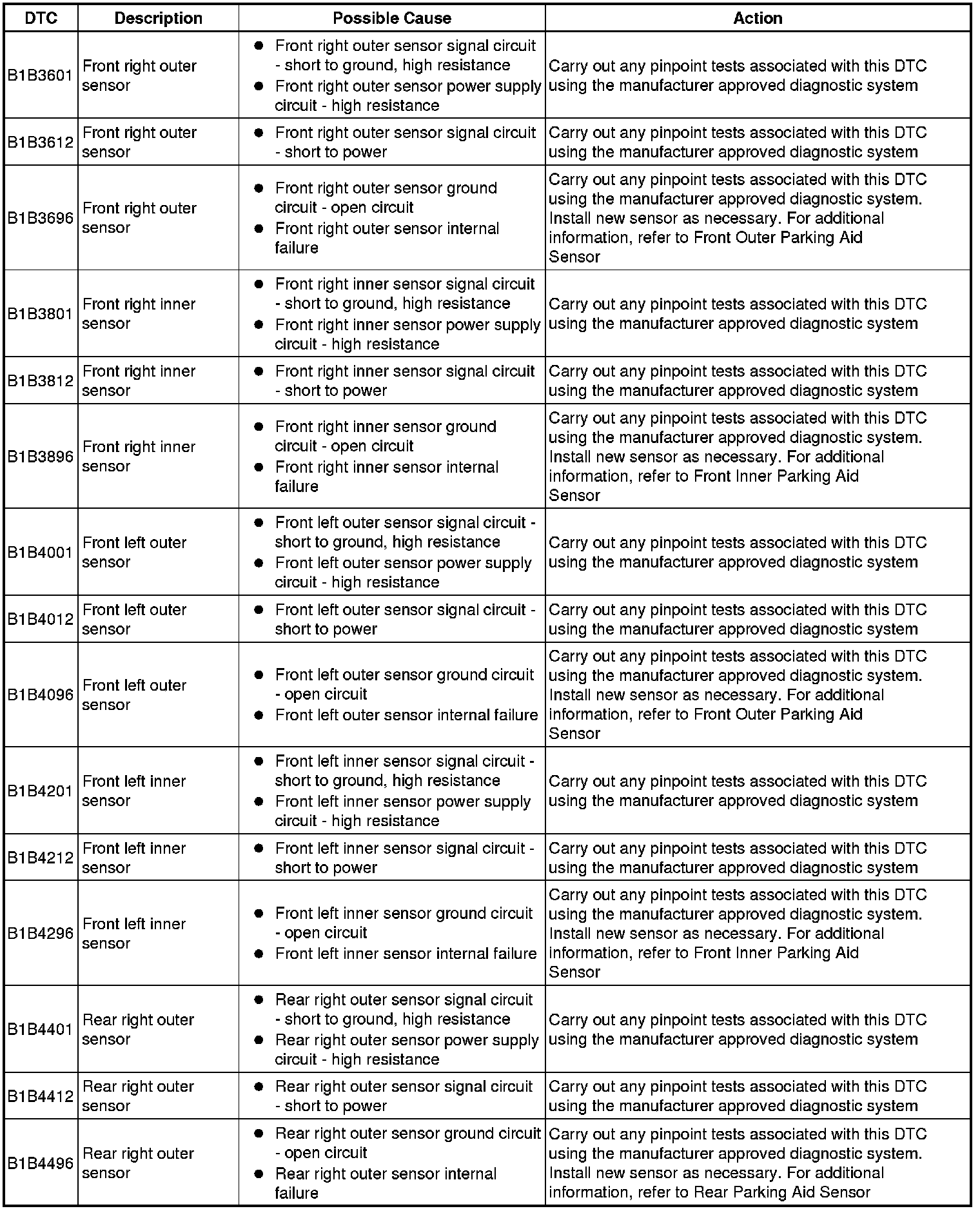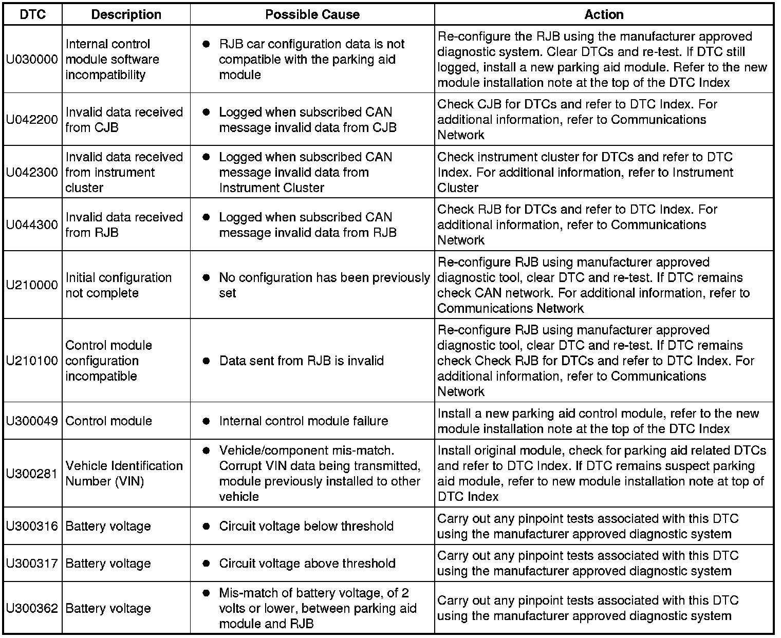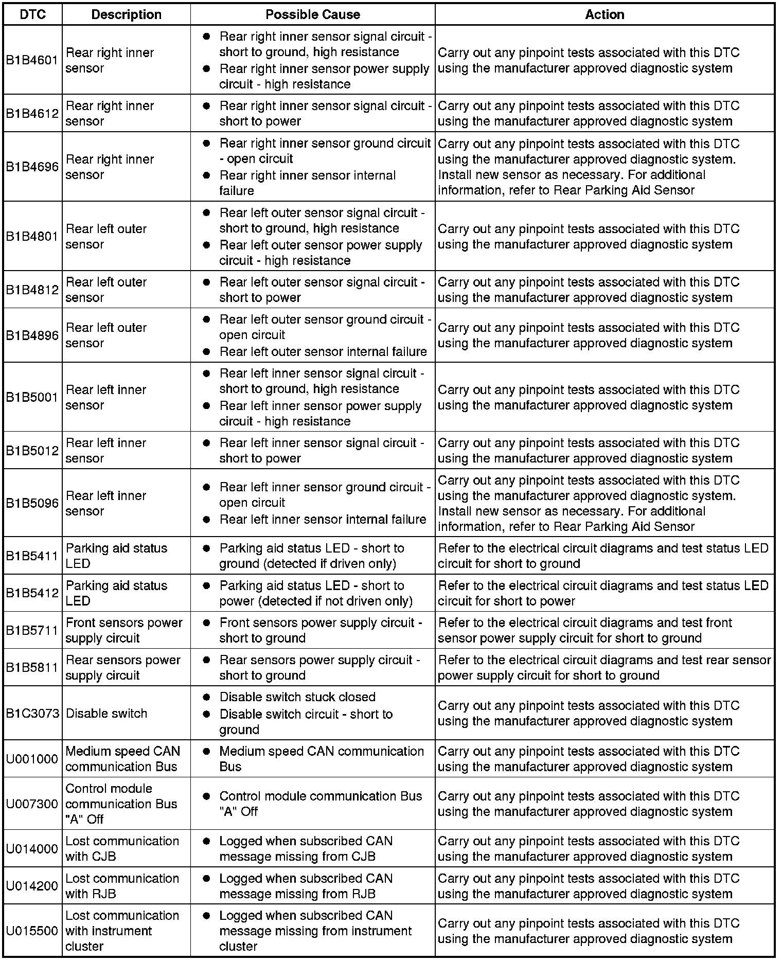 Generic scan tools may not read the codes listed, or may read only five digit codes. Match the five digits from the scan tool to the first five digits of the seven digit code listed to identify the fault (the last two digits give additional information read by the manufacturer approved diagnostic system).