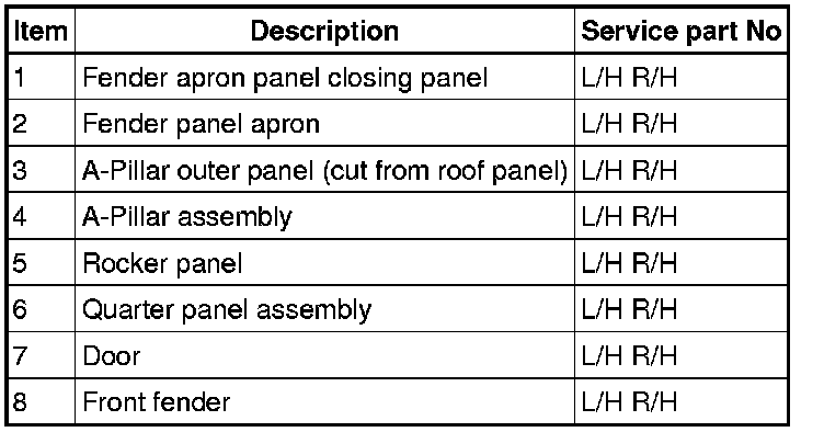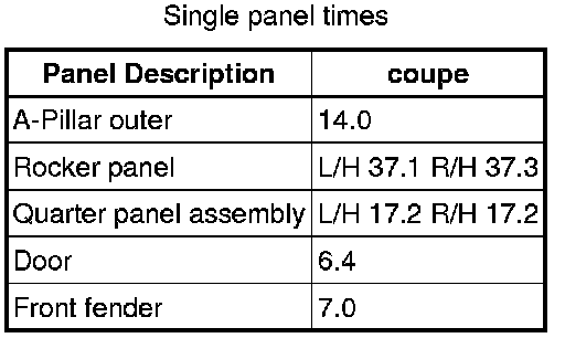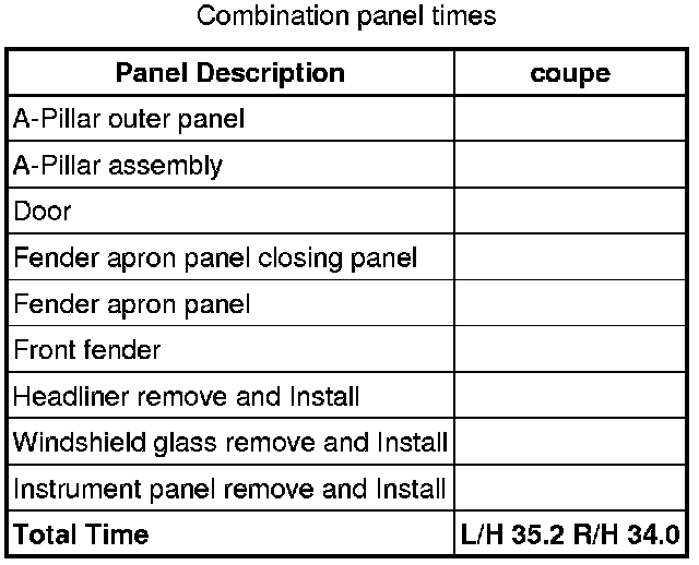 The following information shows the total time taken to replace single panels and complete assemblies. This time includes removal of Mechanical, Electrical and Trim, (MET), items, plus paint times based on Metallic Clear Over Base Paint, (blends to adjacent panels are not included).