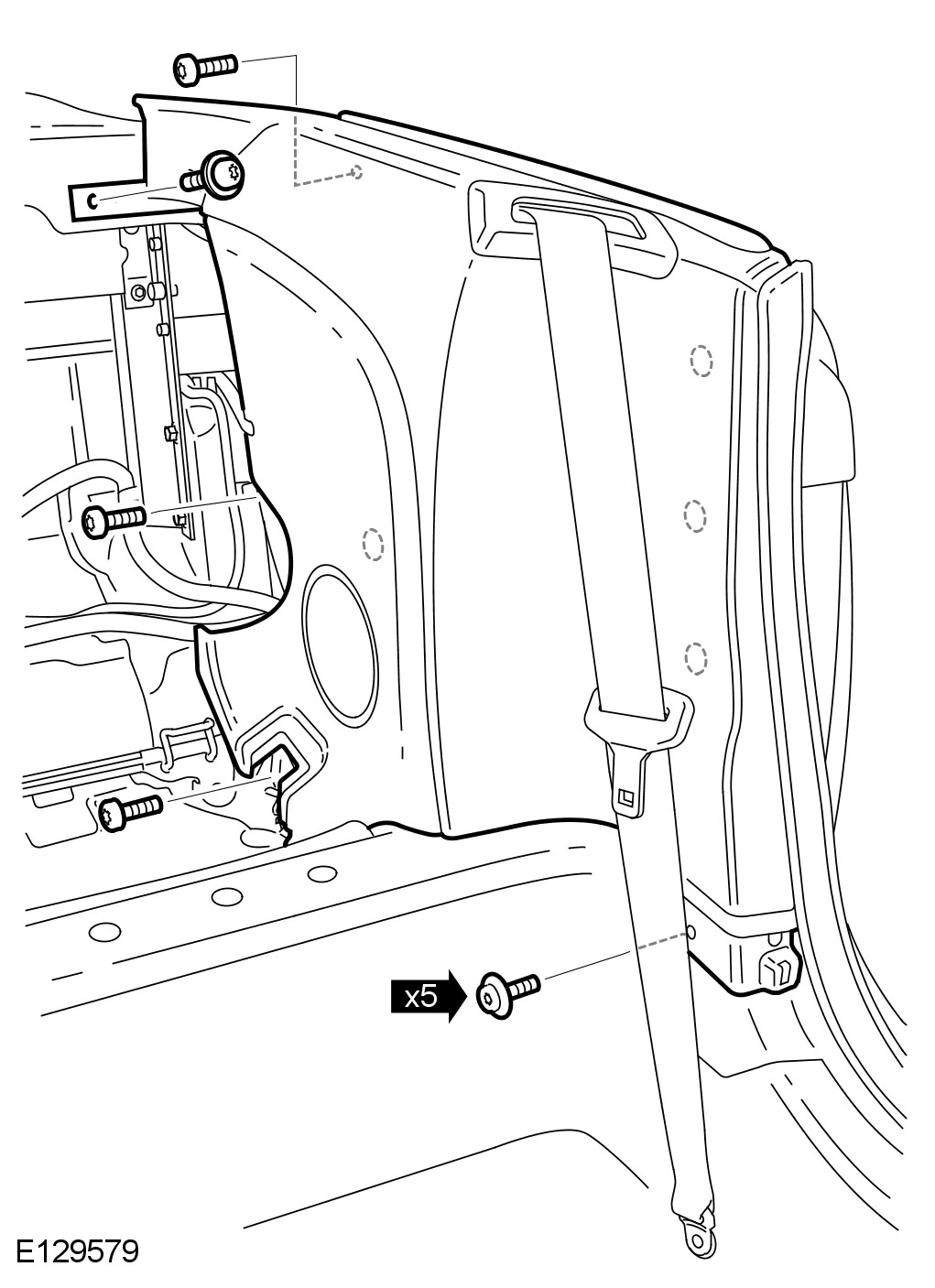 2 Remove the rear safety belt stalk trim panel.