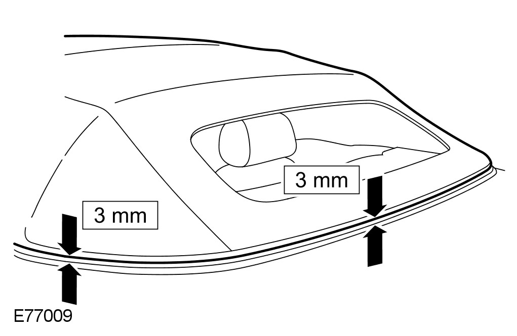 9 Ensure the rear edge of the convertible top has an equal 3mm gap to the convertible top compartment lid and rear quarter glass outer seal seal.