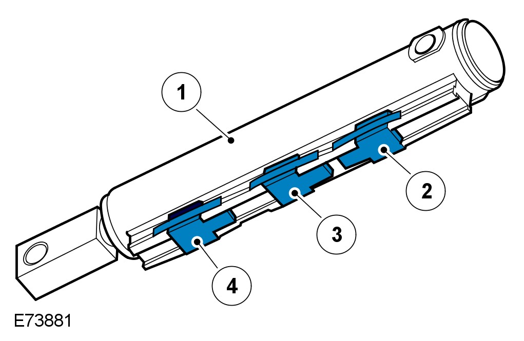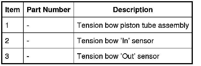 The tension bow sensors are Hall effect sensors located in the tension bow piston tube assembly. The piston tube assembly is located next to the LH tension bow linkage. These sensors inform the control module as to the position of the convertible top tension bow assembly.