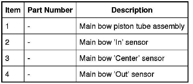 The main bow sensors are Hall effect sensors located in the main bow piston tube assembly. The piston tube assembly is located on the RH main bearing bracket assembly. These sensors sense the position of the main bow piston so the control module knows the exact position of the convertible top.