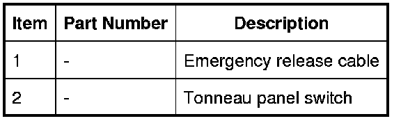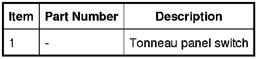 Tonneau panel switch 1 is located on the RH lever assembly. This switch is a normally open microswitch that, when switched to ground, informs the control module that the RH side of the tonneau panel is closed.