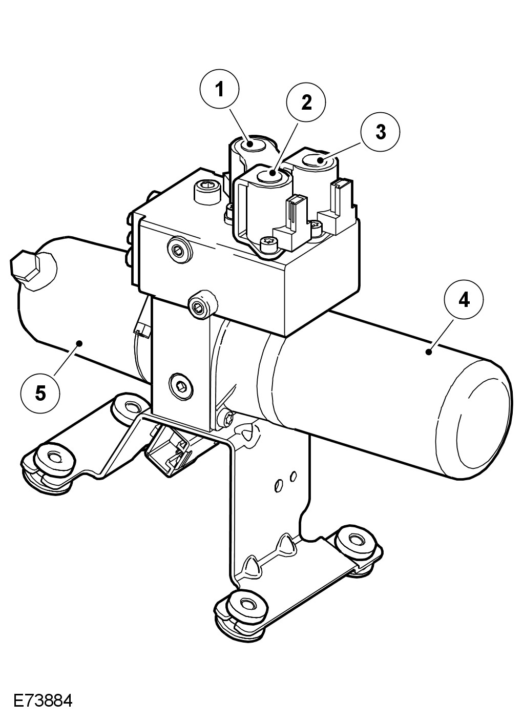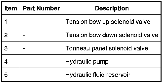 The hydraulic pump, motor and valve block assembly is located in the RH luggage area. The fluid reservoir is filled with Pentosin hydraulic oil. Two fluid levels are marked on the pump reservoir body, the upper mark denotes the fluid level when the top is fully lowered and the lower mark denotes the level when the top is fully raised. The hydraulic pump supplies a maximum pressure of approximately 140 bar during convertible top operation. When the pump is idle the system pressure is approximately 0.1 bar.