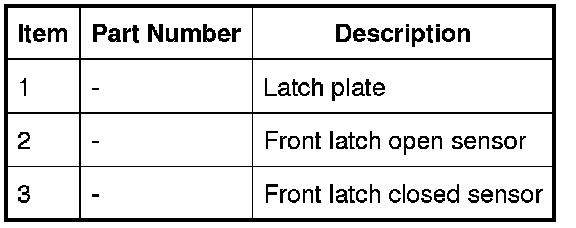 The front latch open and closed sensors are Hall effect sensors located in the LH front latch plate. These sensors inform the control module of when the latch is in the open or closed position.