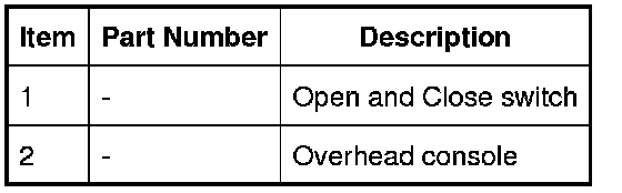 The convertible top open and close switch is located in the overhead console. The switch is a momentary switch that is normally open. When switched to ground the convertible top will start its open or close motion depending on which operation has been requested.