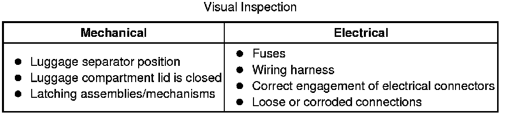 2 Visually inspect for obvious signs of damage and system integrity.
