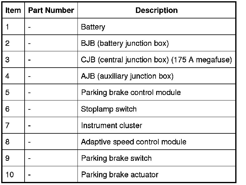 The parking brake is an electrically actuated system that operates on the rear brake calipers. Two cables are connected to the rear brake calipers, and act directly on the same pistons used for normal, hydraulic rear brake actuation. For additional information, refer to Rear Disc Brake Rear Disc Brake