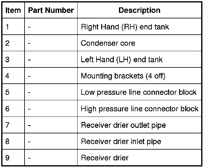 The receiver drier is part of the condenser assembly and is not serviceable separately.