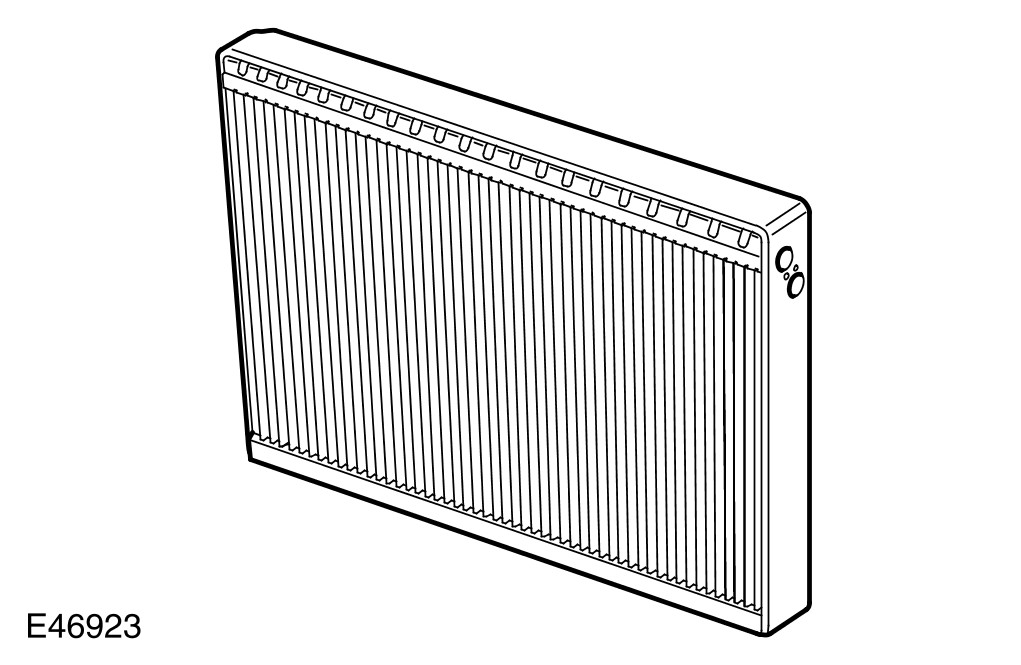 The evaporator is installed in the heater assembly, between the blower and the heater matrix, to absorb heat from the exterior or recirculated air. Low pressure, low temperature refrigerant changes from liquid to vapor in the evaporator, absorbing large quantities of heat as it changes state.