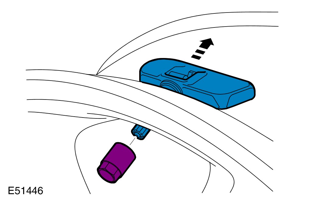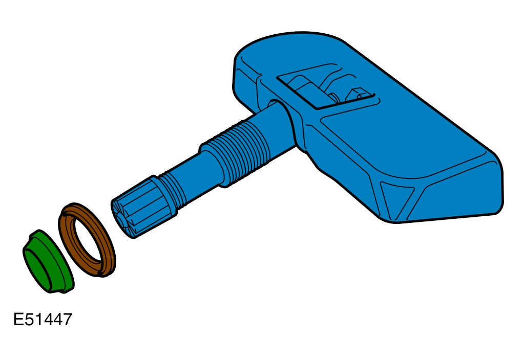 If the sensor is replaced on a 'running' wheel, the new sensor identification will be learnt in the first 15 minutes of the vehicle is being driven. If a new sensor is fitted to the spare wheel the identification for that sensor must be programmed into the Tire Pressure Monitoring System (TPMS) module using WDS. The identification code is provided on a label with the complete assembly and is also printed on the sensor assembly.