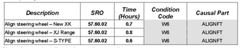 Any other steering alignment repairs are to be carried out as a separate Warranty Claim. Vehicle geometry machine print outs from before and after any steering alignment adjustments are to be submitted with warranty claim.